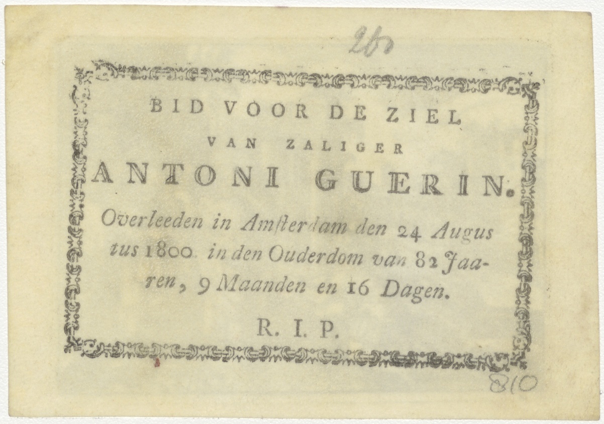 De honderdman vraagt genezing van zijn knecht, kz. Bid voor ziel Antoni Guerin (+1800);Amsterdam