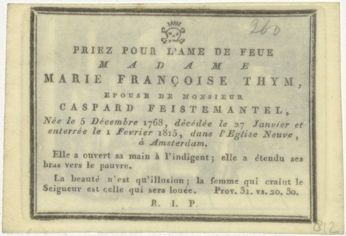 Christus met de overspelige vrouw, kz. Bid voor ziel Marie Françoise Thym (+1815);Amsterdam