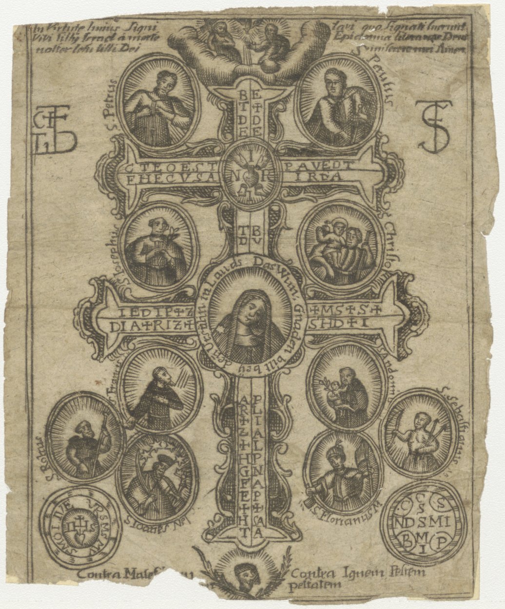 Caravaccakruis, met afbeeldingen van diverse heiligen, etc.