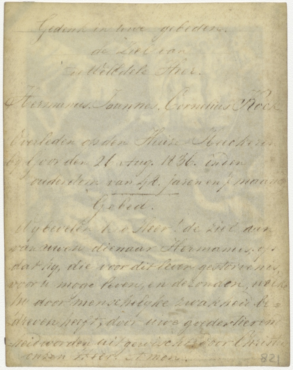 Broederschap van de goede en zaligen dood, kz. Bid voor ziel Kock (+1836);Huize Heeckeren;bij Goor