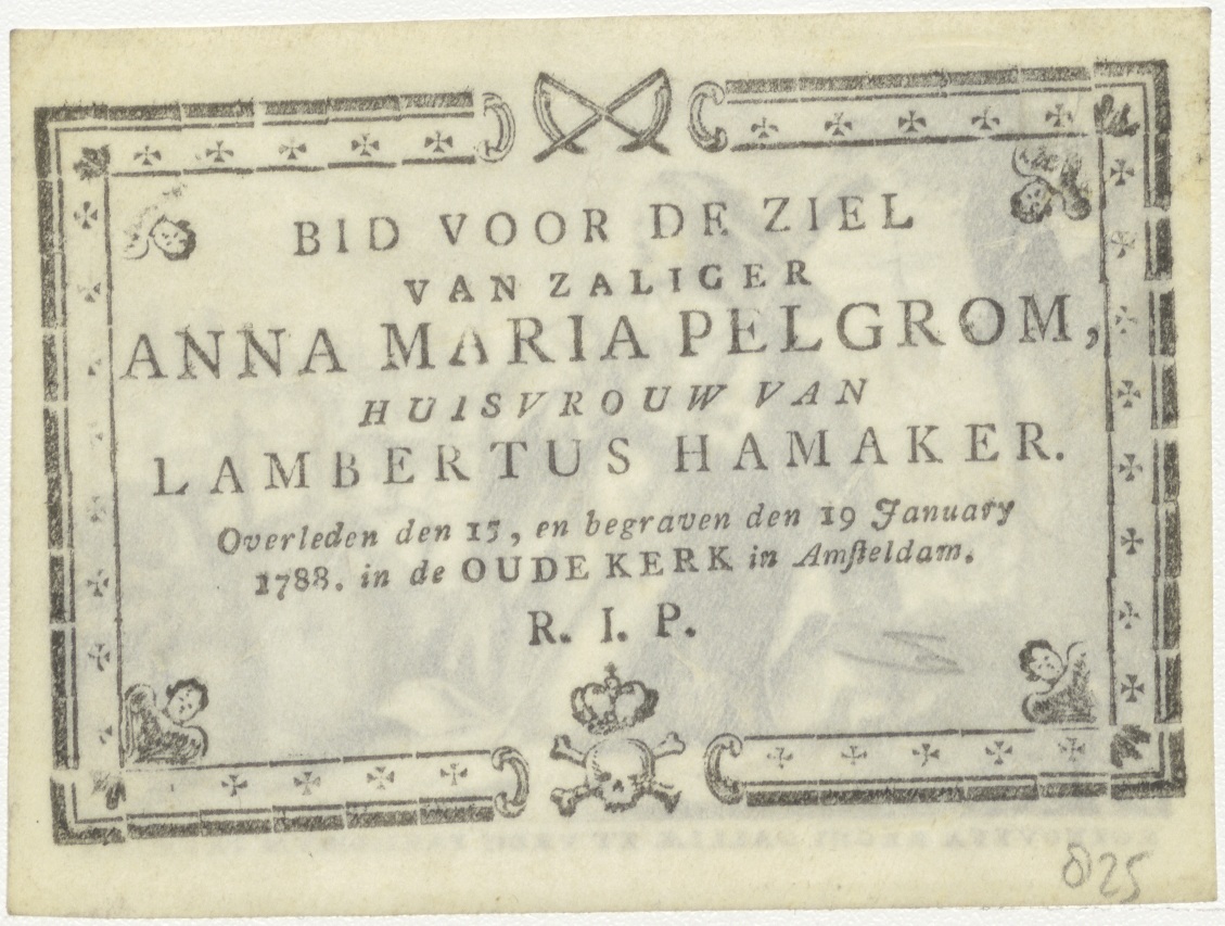 H. Genoveva van Parijs, kz. Bid voor ziel Pelgrom (+1788);Amsterdam