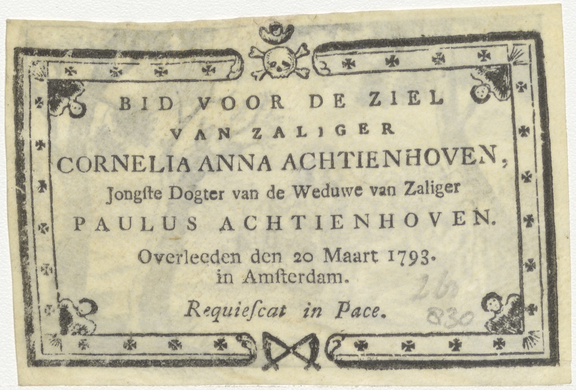 Rust op de vlucht naar Egypte, kz. Bid voor ziel Achtienhoven (+1793);Amsterdam