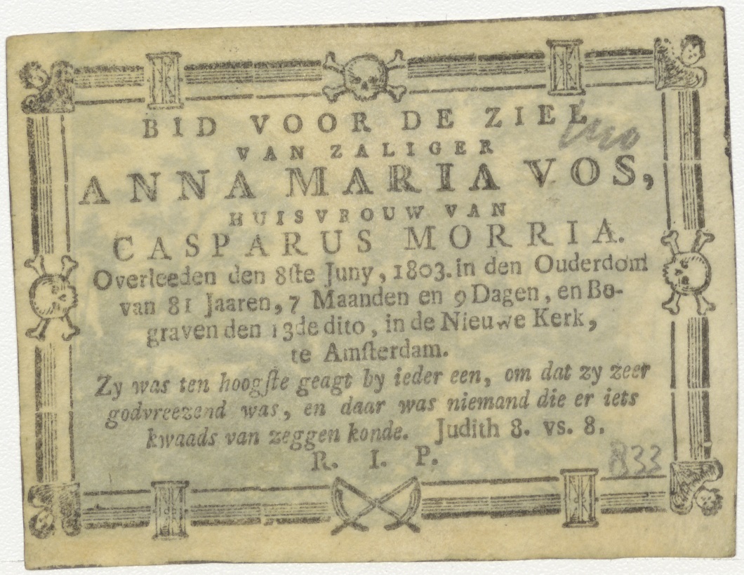 H. Johannes de Evangelist, kz. Bid voor ziel Vos (+1803);Amsterdam