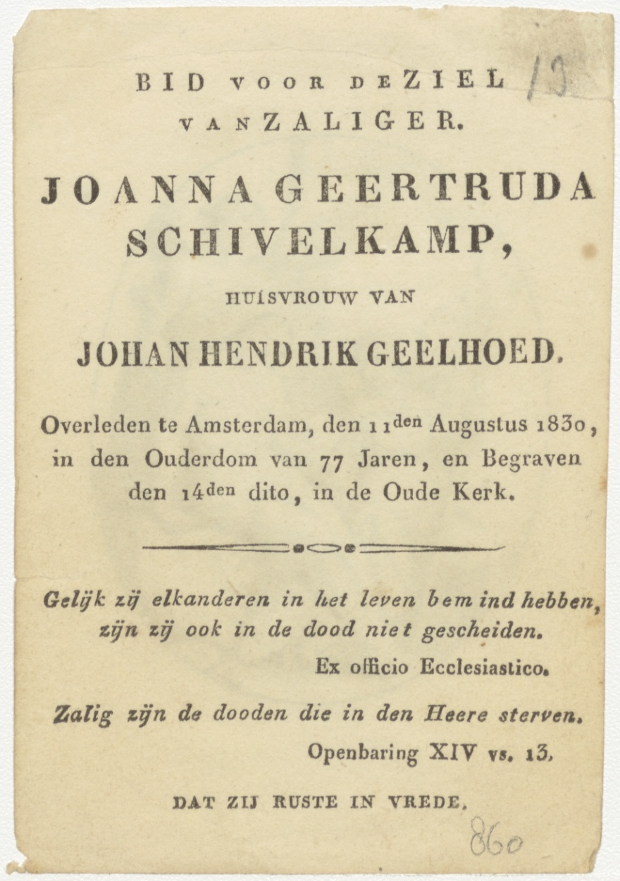 Christus als Man van Smarten, gesteund door twee engelen, kz. Bid voor ziel Schivelkamp (+1830);Amsterdam