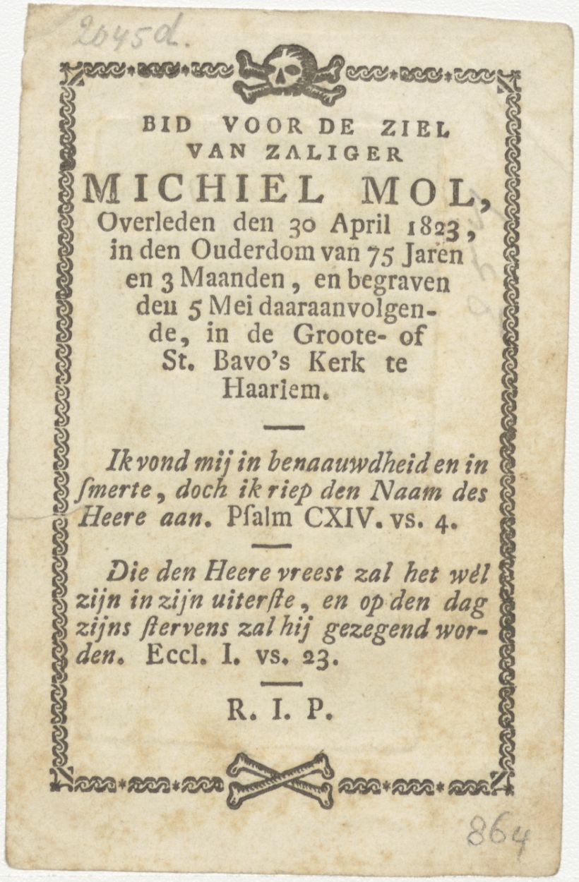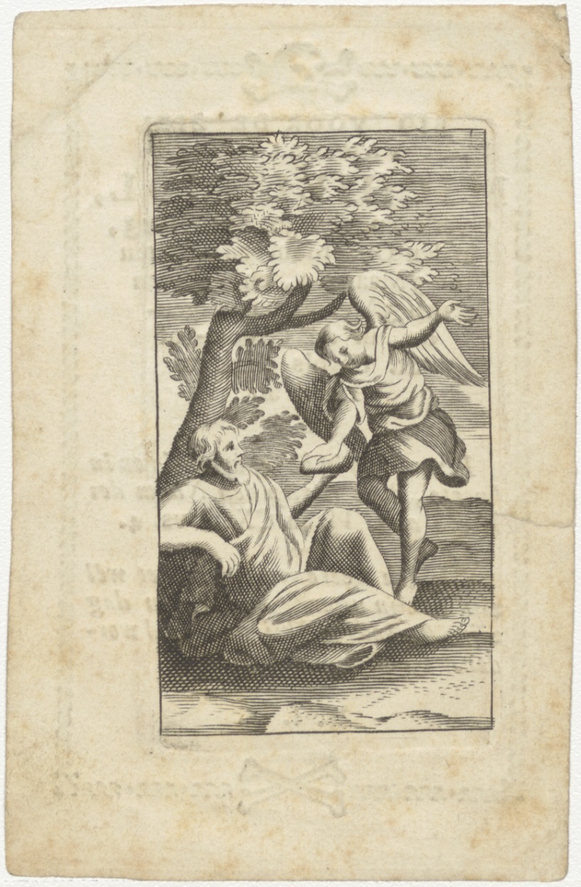Elia (Elias?) met de engel, kz. Bid voor ziel Mol (+1823);Haarlem