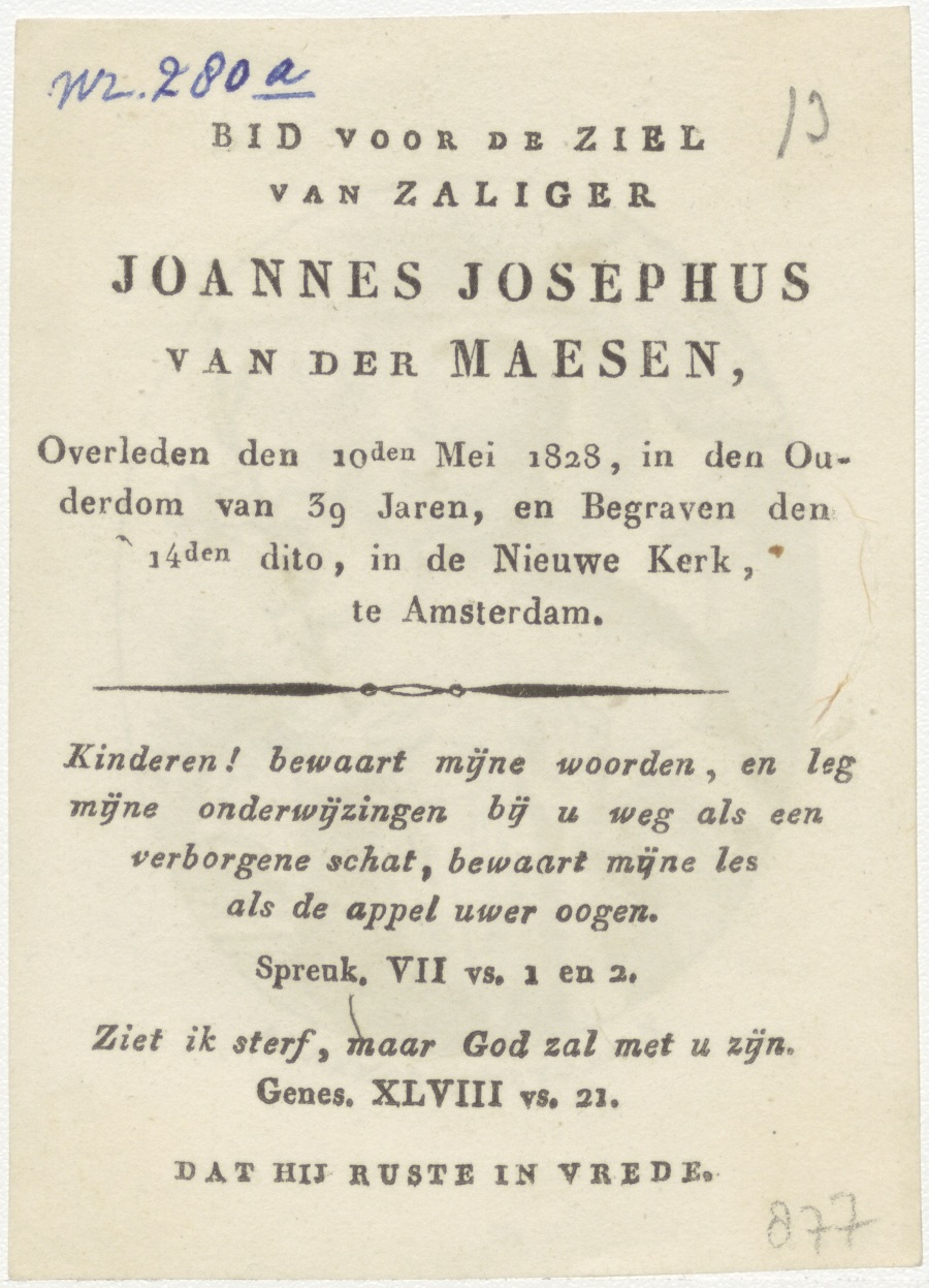 H. Aloysius van Gonzaga, kz. Bid voor ziel Van den Maesen (+1828);Amsterdam