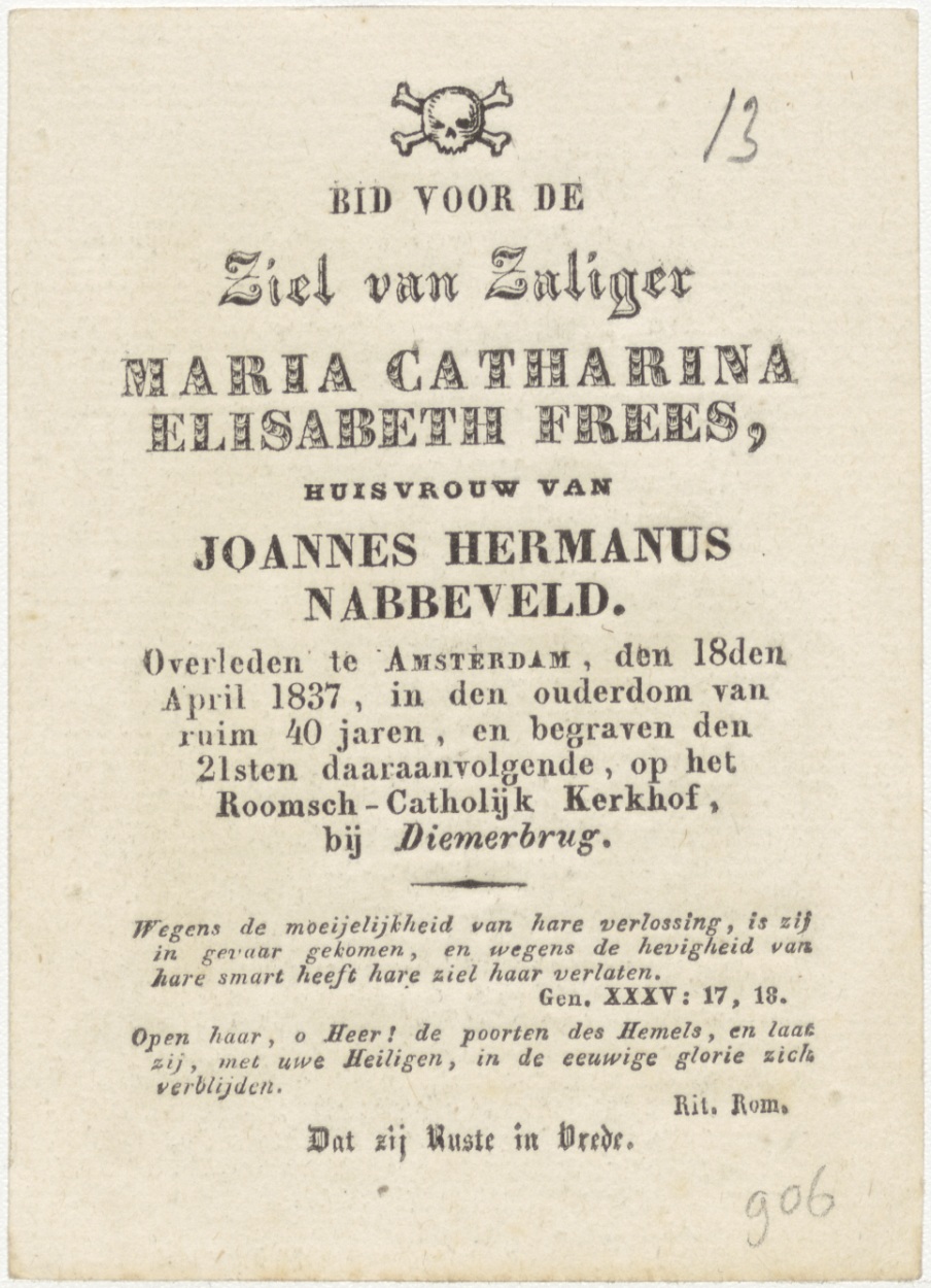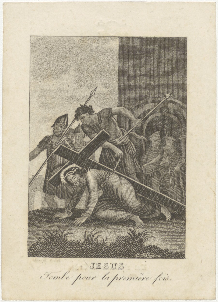 Kruiswegstatie, Jezus valt voor de eerste maal, kz. Bid voor ziel Frees (+1837);Amsterdam