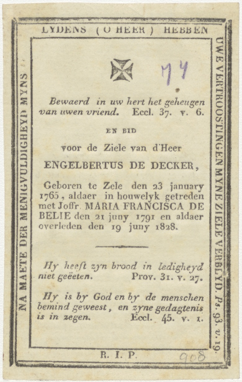 Graftombe, alziend oog, kruisbeeld, kz. Bid voor ziel Engelbertus de Decker (+1828) Zele