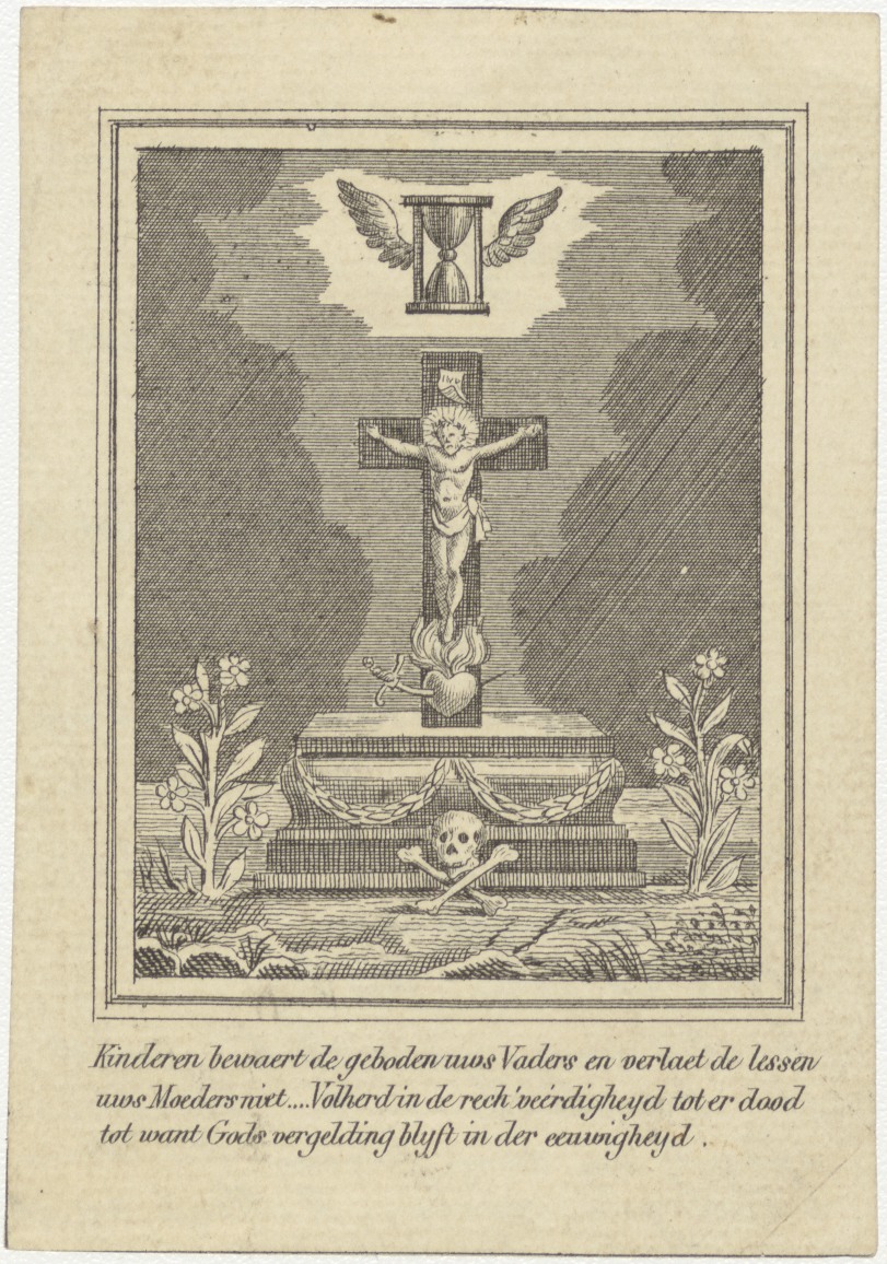 Grafmonument met kruisbeeld, kz. Bid voor ziel Nieuwenhof (+1840)