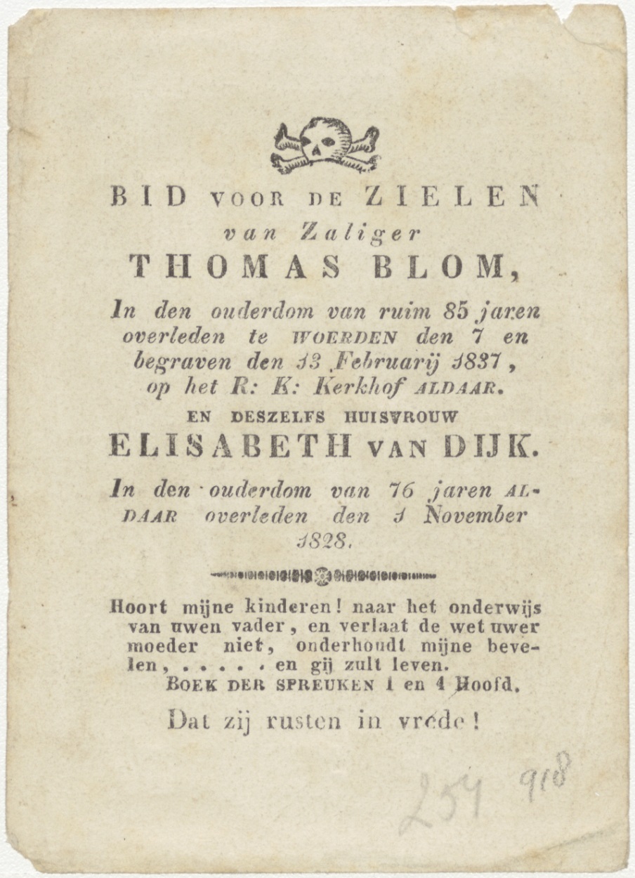H. Rochus, kz. Bid voor ziel Blom (+1837)