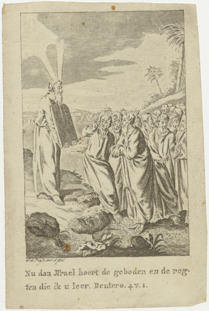 Mozes maakt in de woestijn de Wet des Heren aan de Israëlieten bekend