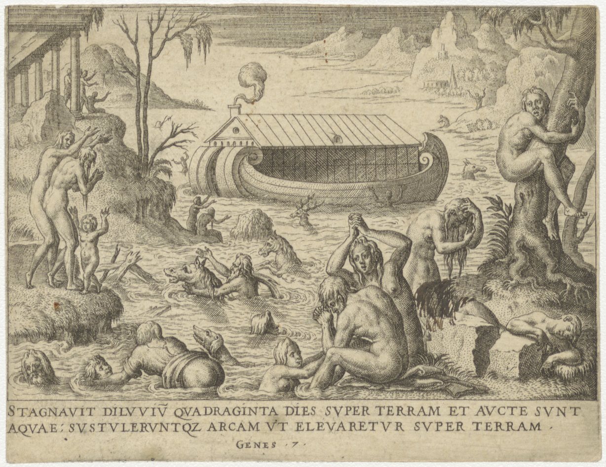 De Zondvloed, op de achtergrond de Arke Noachs