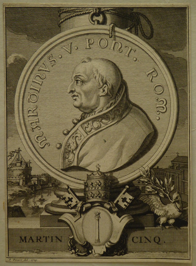Portret van paus Martinus V (1368-1431), paus vanf 1417, gravure naar penning