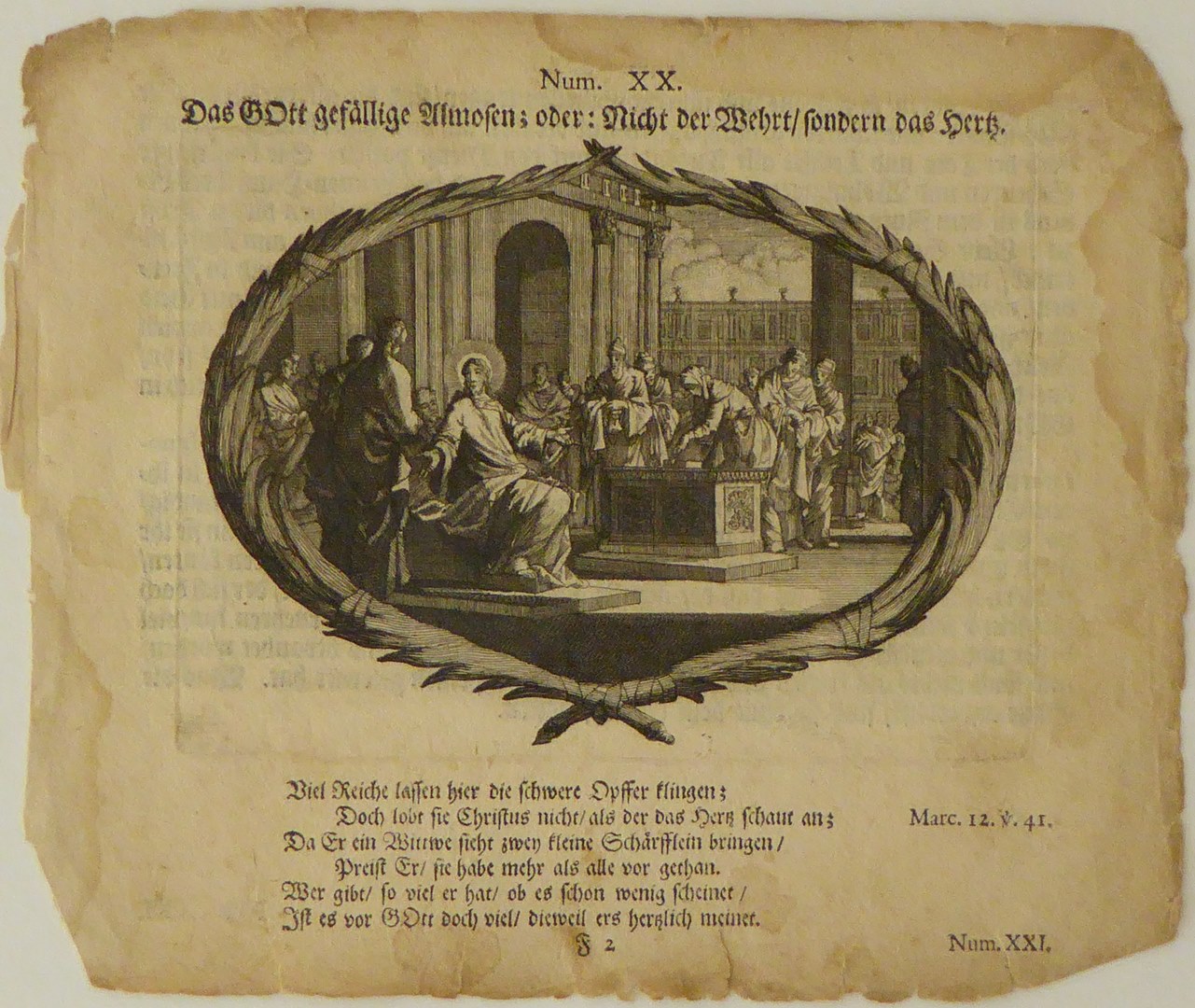 Prentbijbel (Duits)(serie): Het penninkske der weduwe (Mar.12:41)