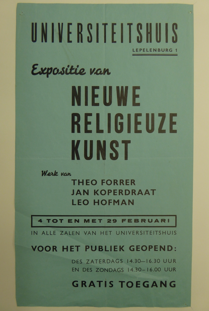 Affiche Universiteitshuis Lepelenburg "Expositie nieuwe religieuze kunst" (1952-02-04 t/m 1952-02-29)