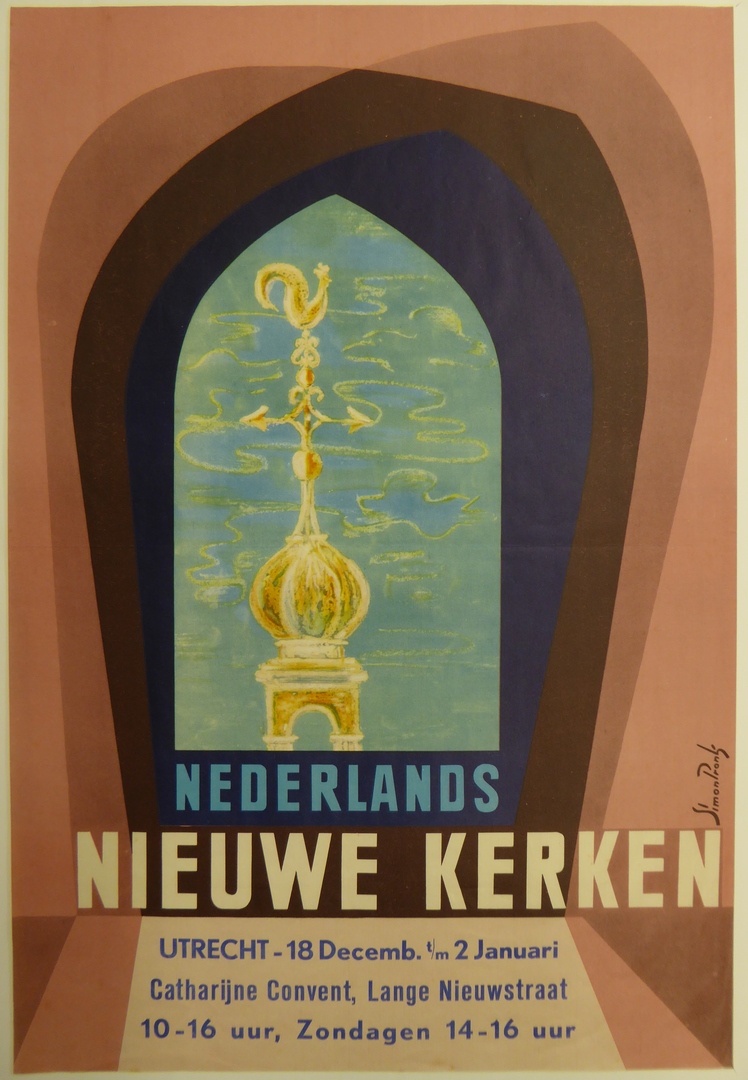 Affiche tentoonstelling Nederlands nieuwe kerken, Utrecht - 18 Decem. t/m 2 Januari Catharijne Convent, Lange Nieuwstraat