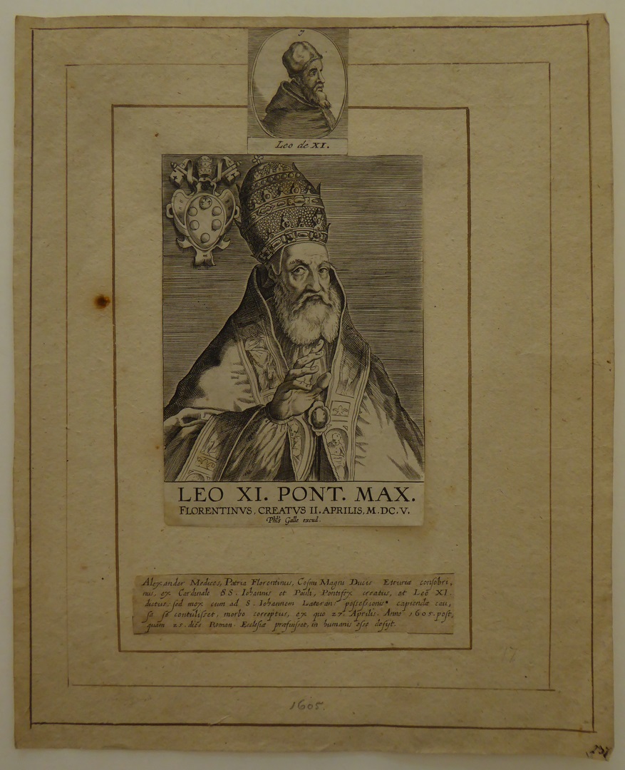 Portret van paus Leo XI (1535-1605), met klein portretje Leo XI