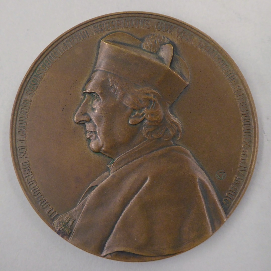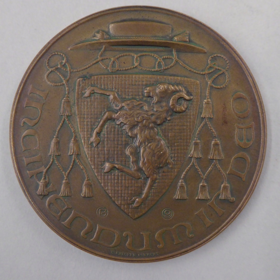 Gedenkpenning vijftigjarig priesterjubileum Mgr. G.W. van Heukelum met diens portret, kz. wapen