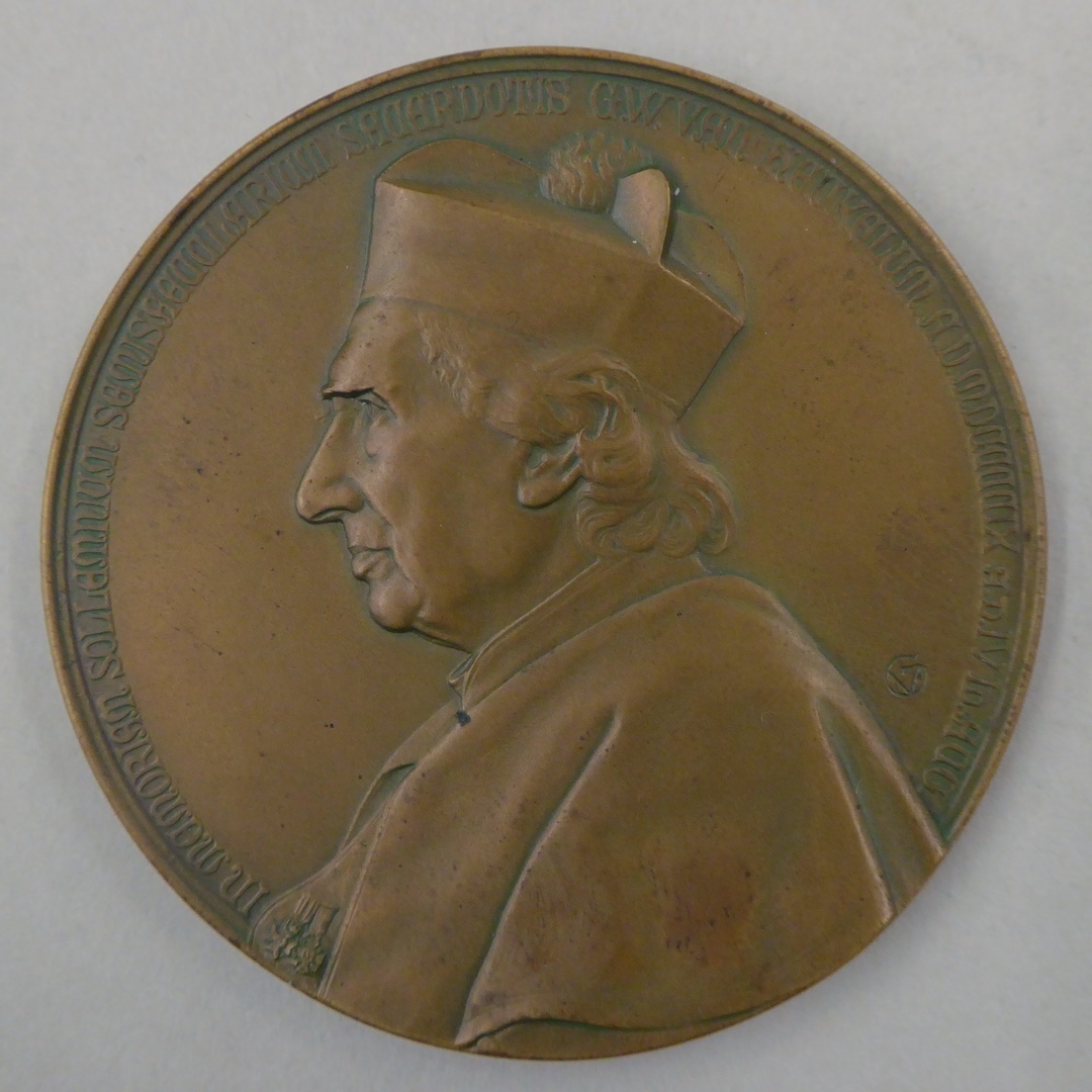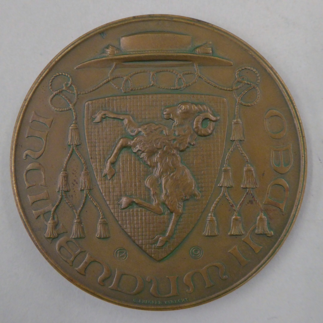 Gedenkpenning vijftigjarig priesterjubileum Mgr. G.W. van Heukelum met diens portret, kz. wapen