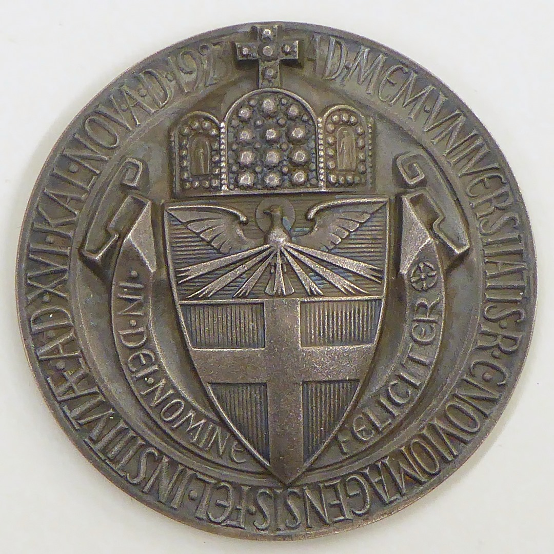 Gedenkpenning stichting R.K. universiteit Nijmegen met wapen, kz. kapel