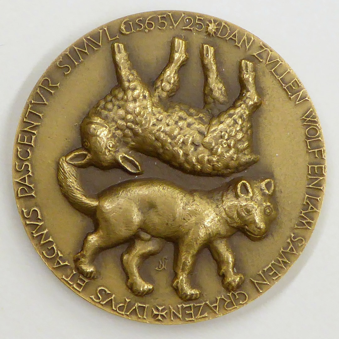 Penning Tweede Vaticaans Concilie met wolf en lam samen grazend (Jes.65:5), kz. concilie