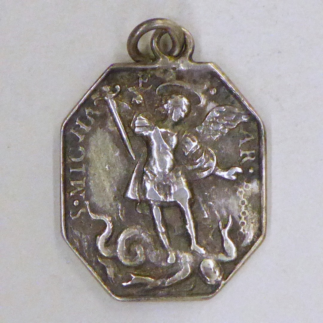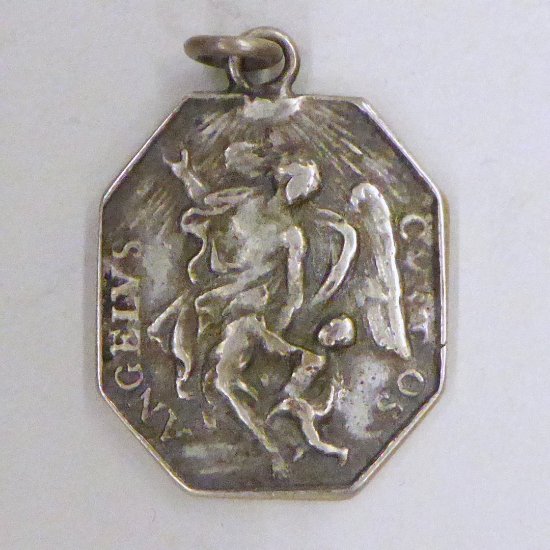 Draagpenning, achtkantig, met H. Michael, kz. engel met kind