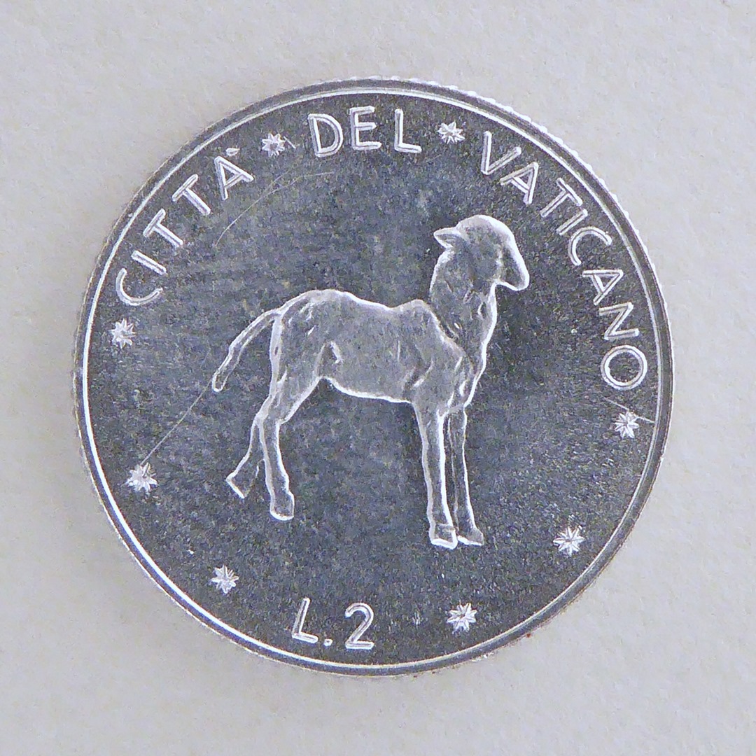 Pausmunt (twee lire) Vaticaanstad, Paulus VI, kz. lammetje