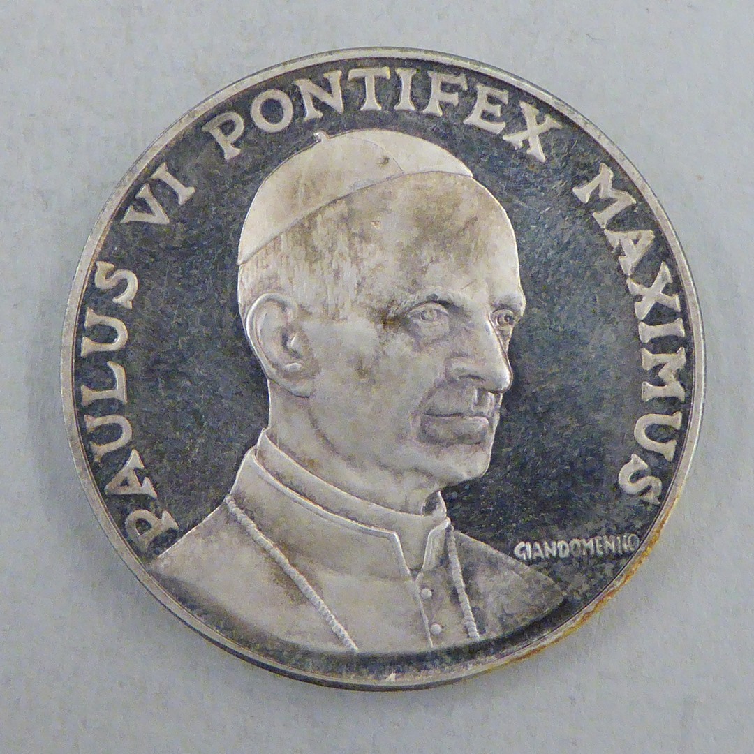 Pausmunt met portret Paulus VI, kz. kruis met vier paar handen