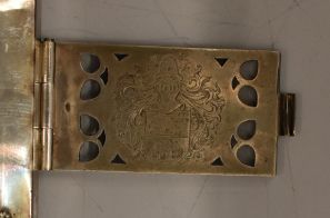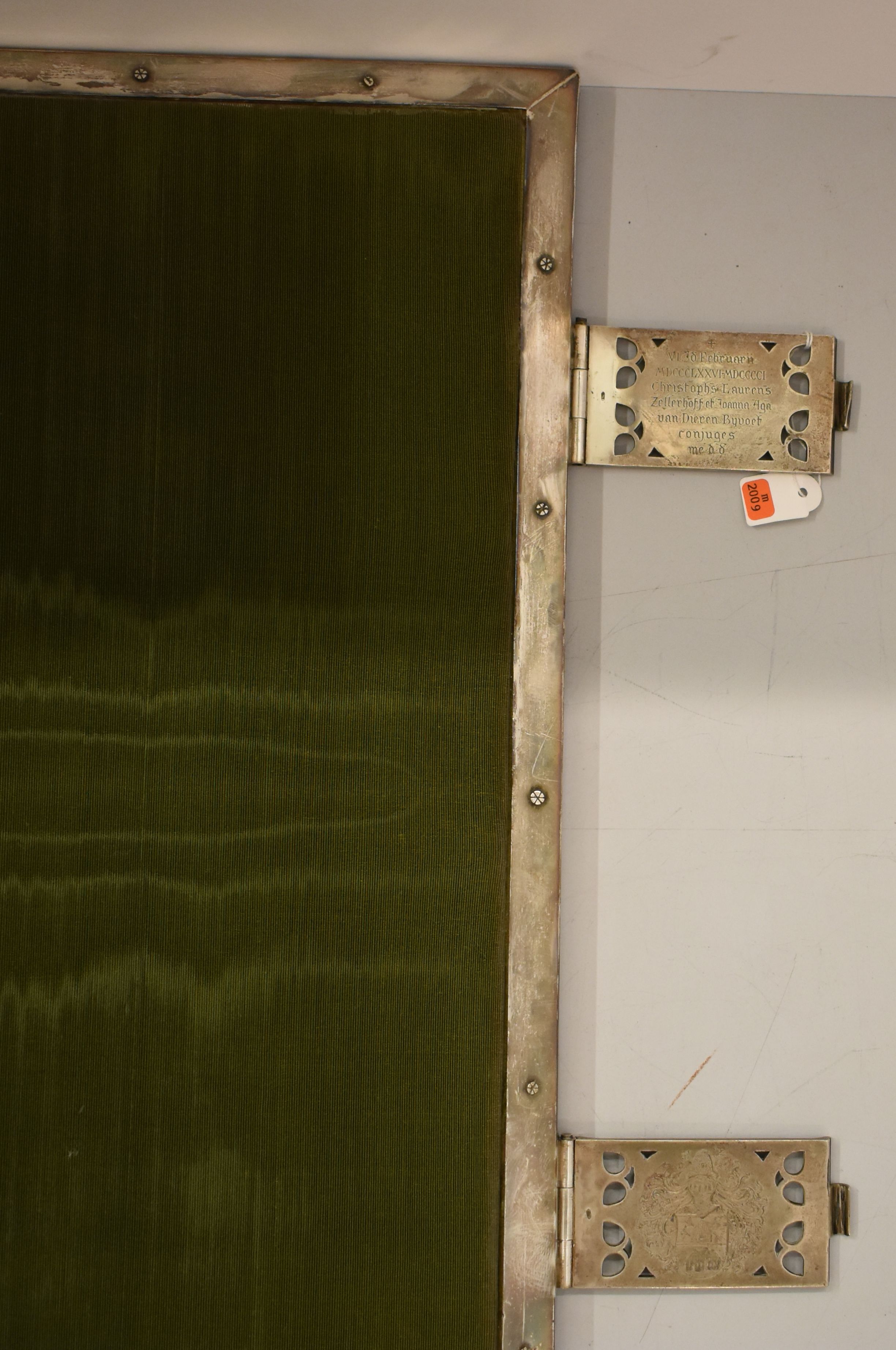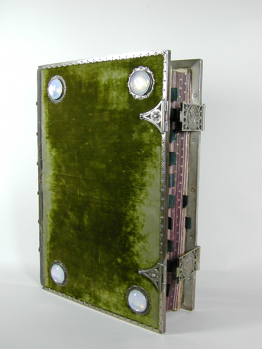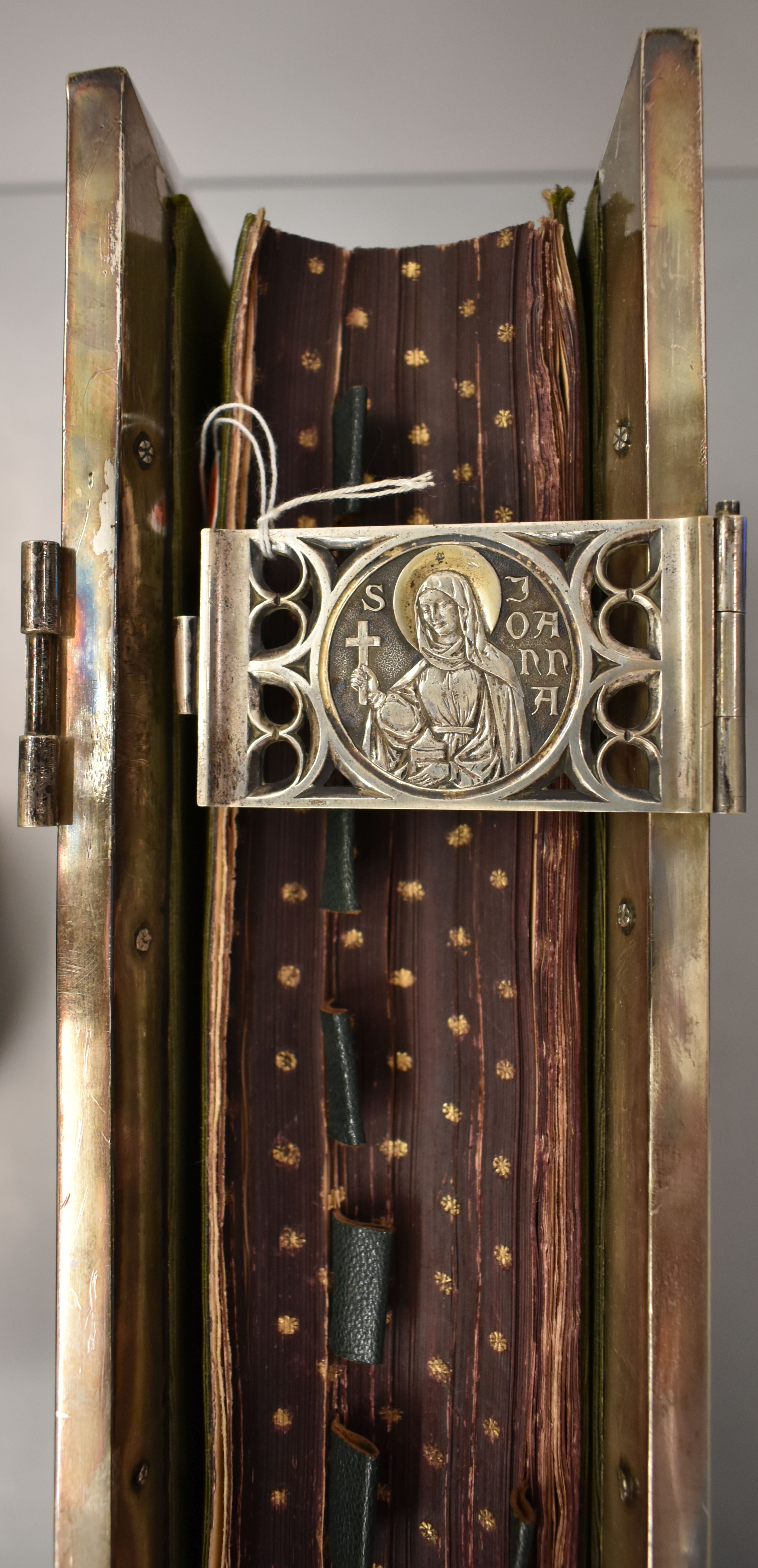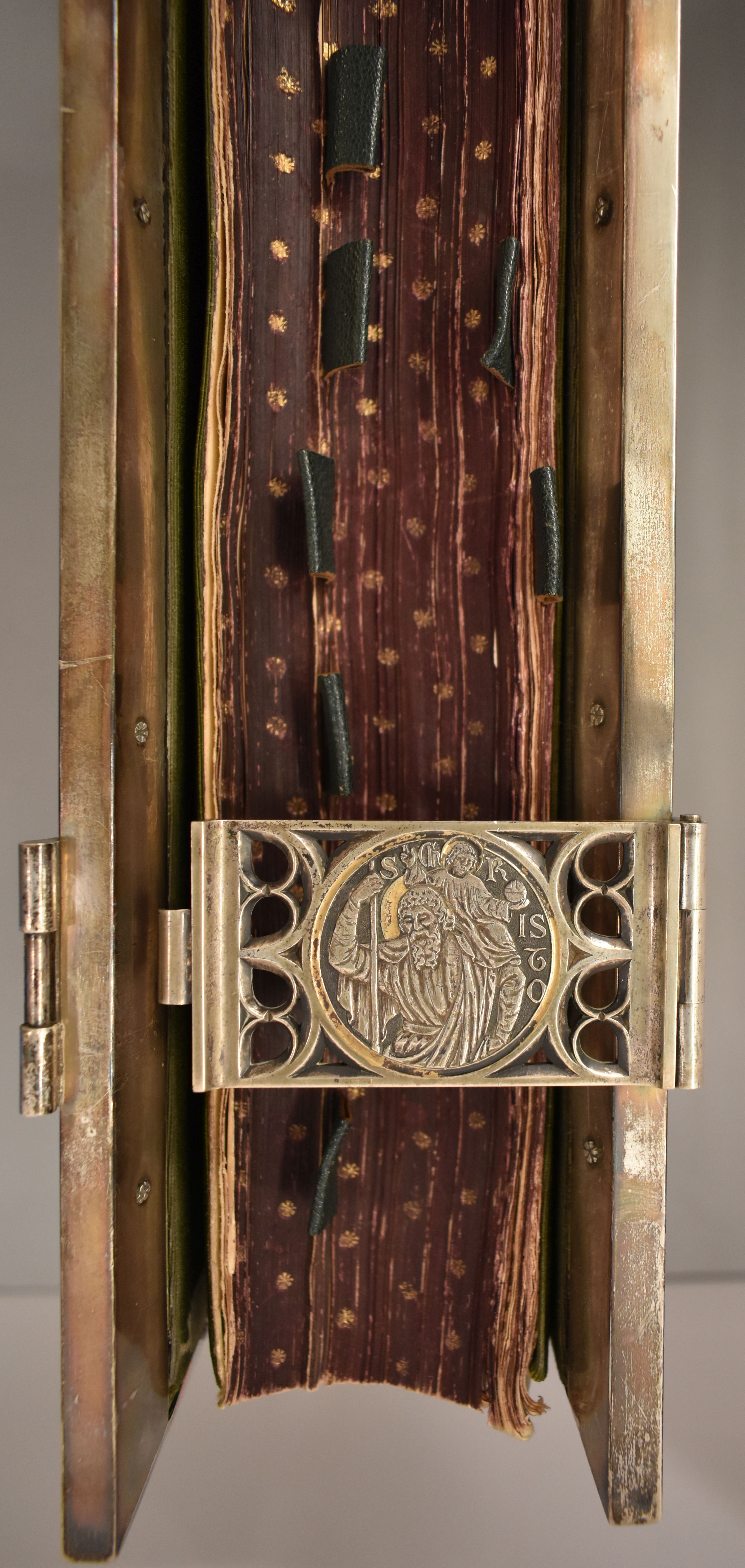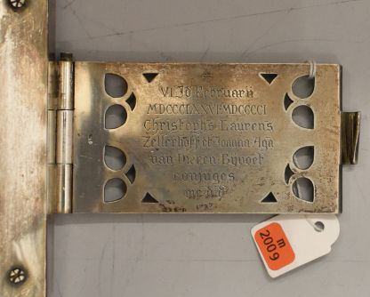 Missaal met op band Christus als Pantocrator, afkomstig uit parochie H. Willibrord te Utrecht. Op de bovenste klamparm aan de binnenkant staat "VI Id Februarii / MDCCCLXXVI-MDCCCCI [1876-1901] / Christoph[er]s Lauren[tiu]s / Zellerhoff et Joanna Ag[ath]a / van Dieren Bijvoet / conjuges / me d d". In de onderste klamparm staat hun samengestelde familiewapen. De ...