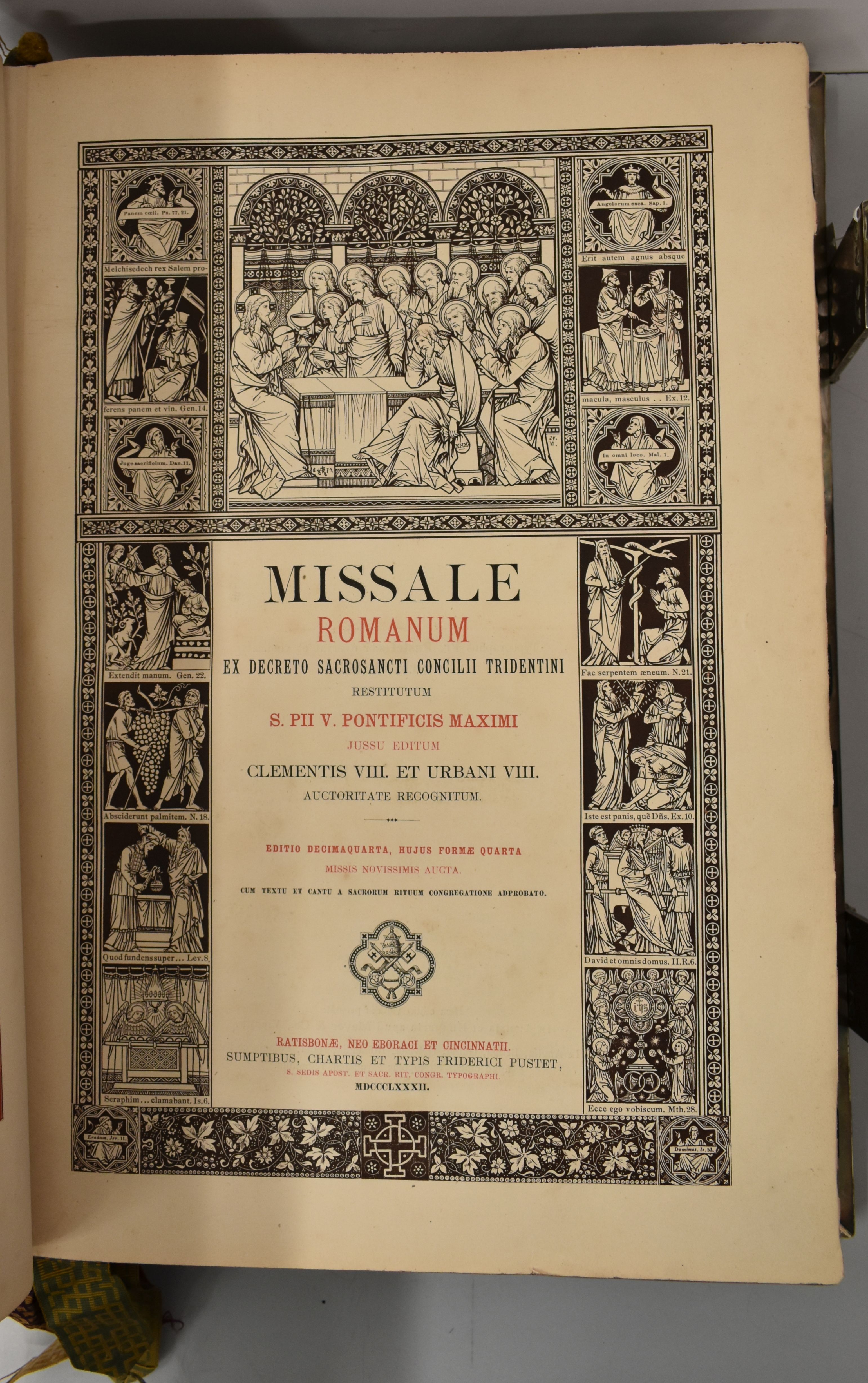 Missale Romanum ex decreto sacrosancti concilii Tridentini restitutum S. Pii V. Pontificis Maximi jussu editum, Clementis VIII. et Urbani VIII. Auctoritate recognitum. Editio decimaquarta, hujus formae Quarta. Missaal met op band Christus als Pantocrator