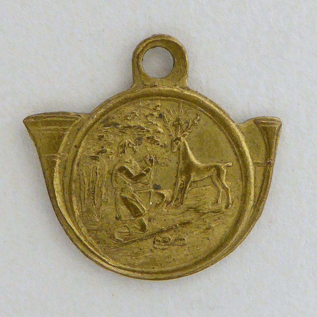 Verenigingsmedaille, hoorn met jachttafereel, kz. met "H. Hubertus bidt voor ons" (frans)