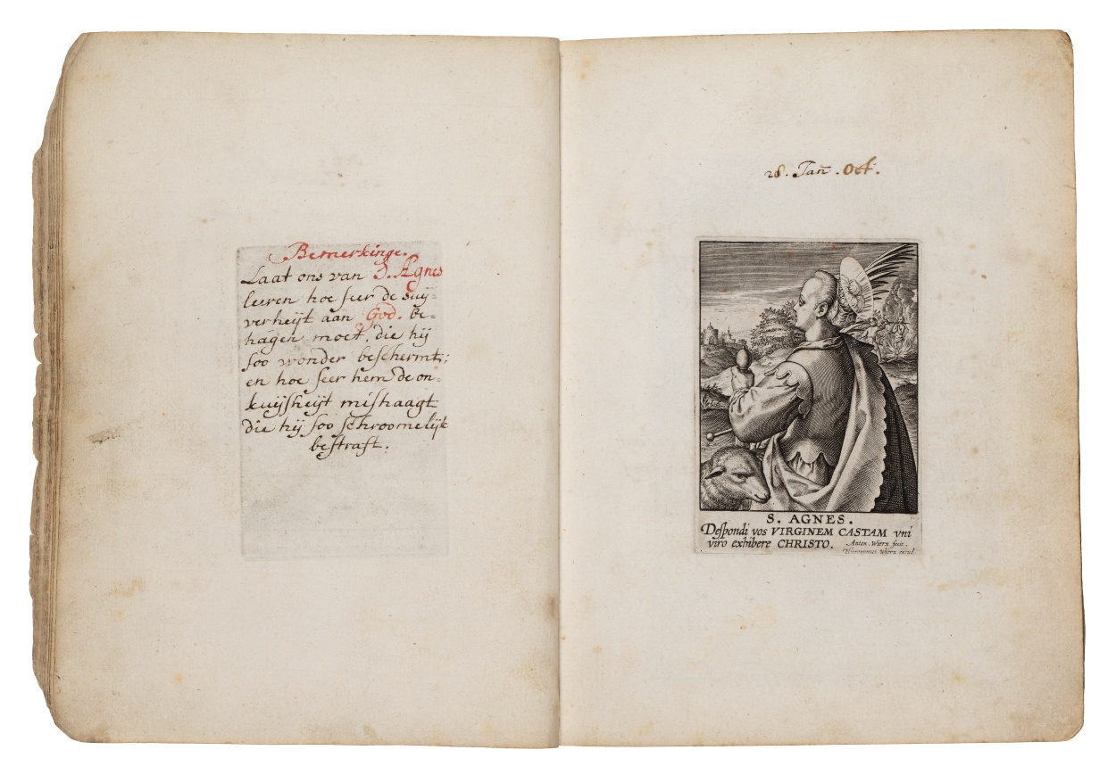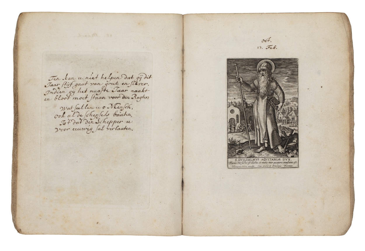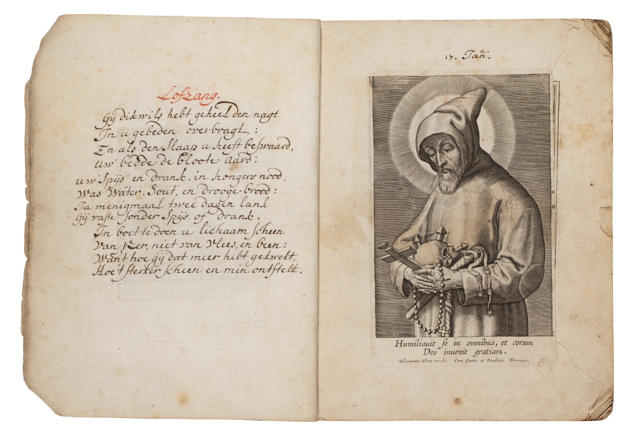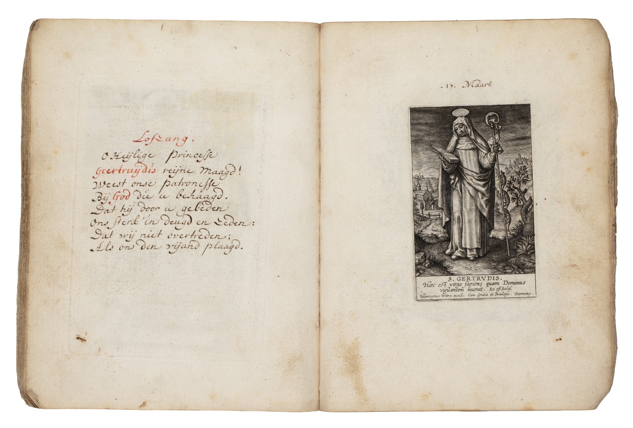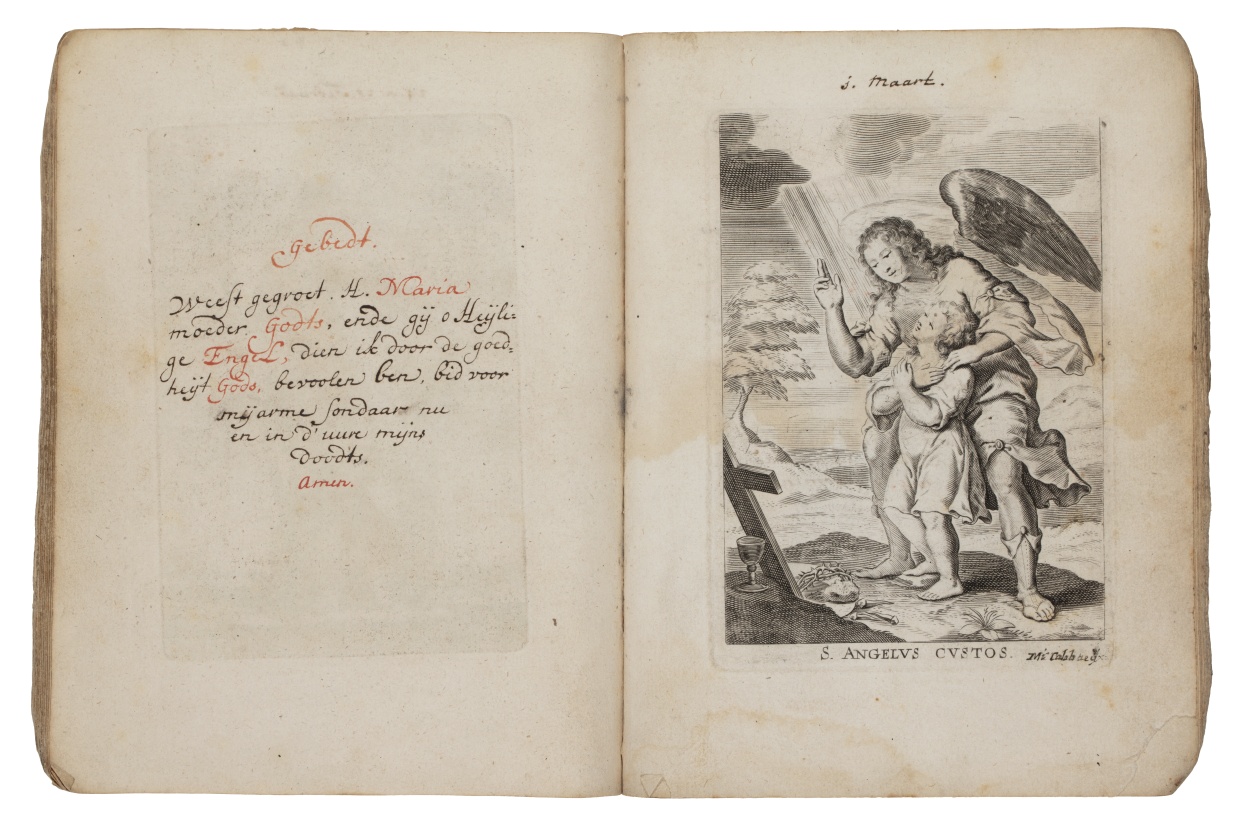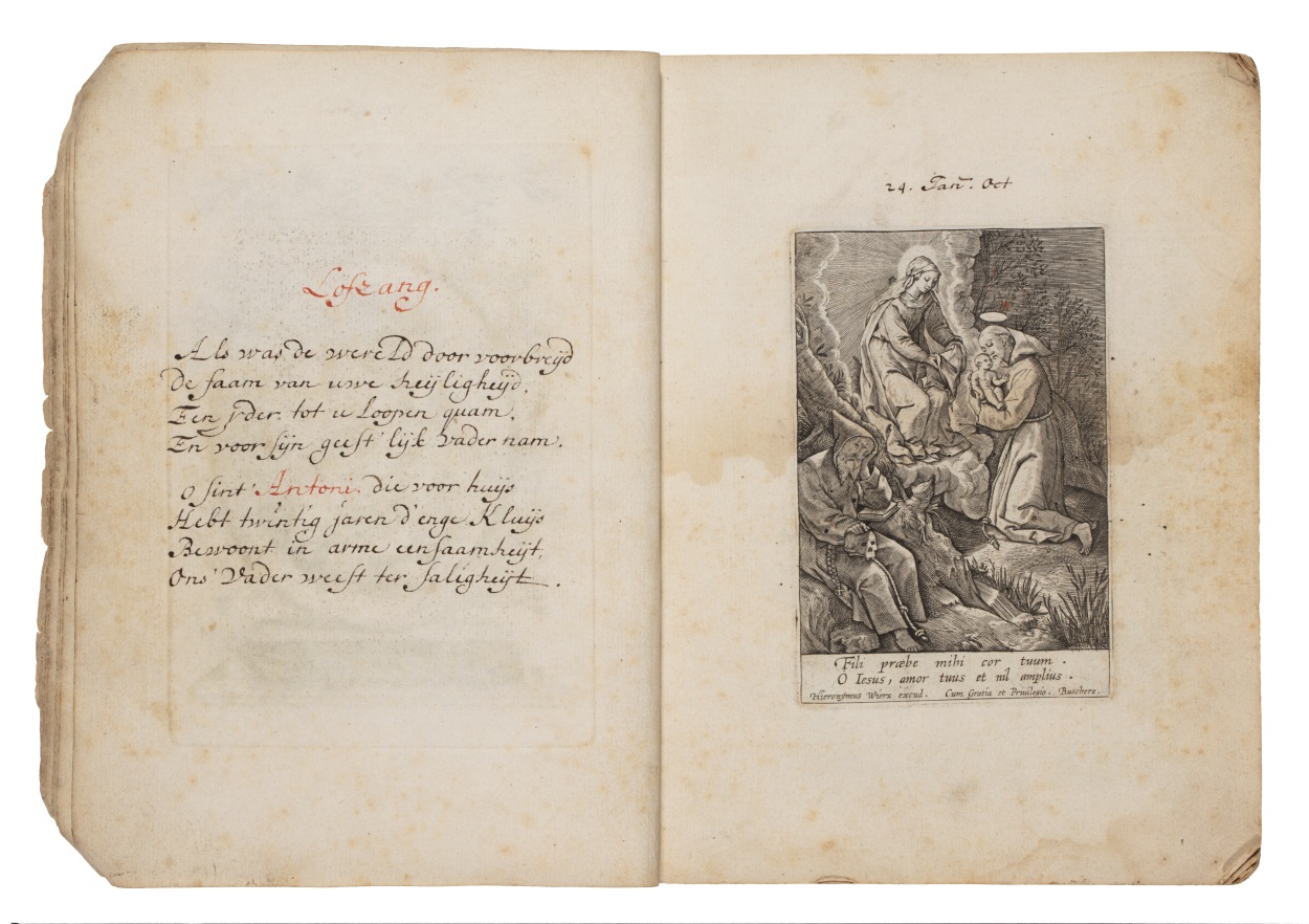 Album met handgeschreven gebeden en meditaties tot diverse heiligen (januari-oktober), met prenten