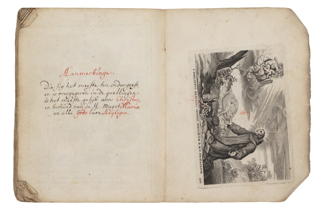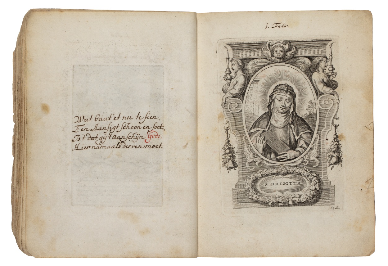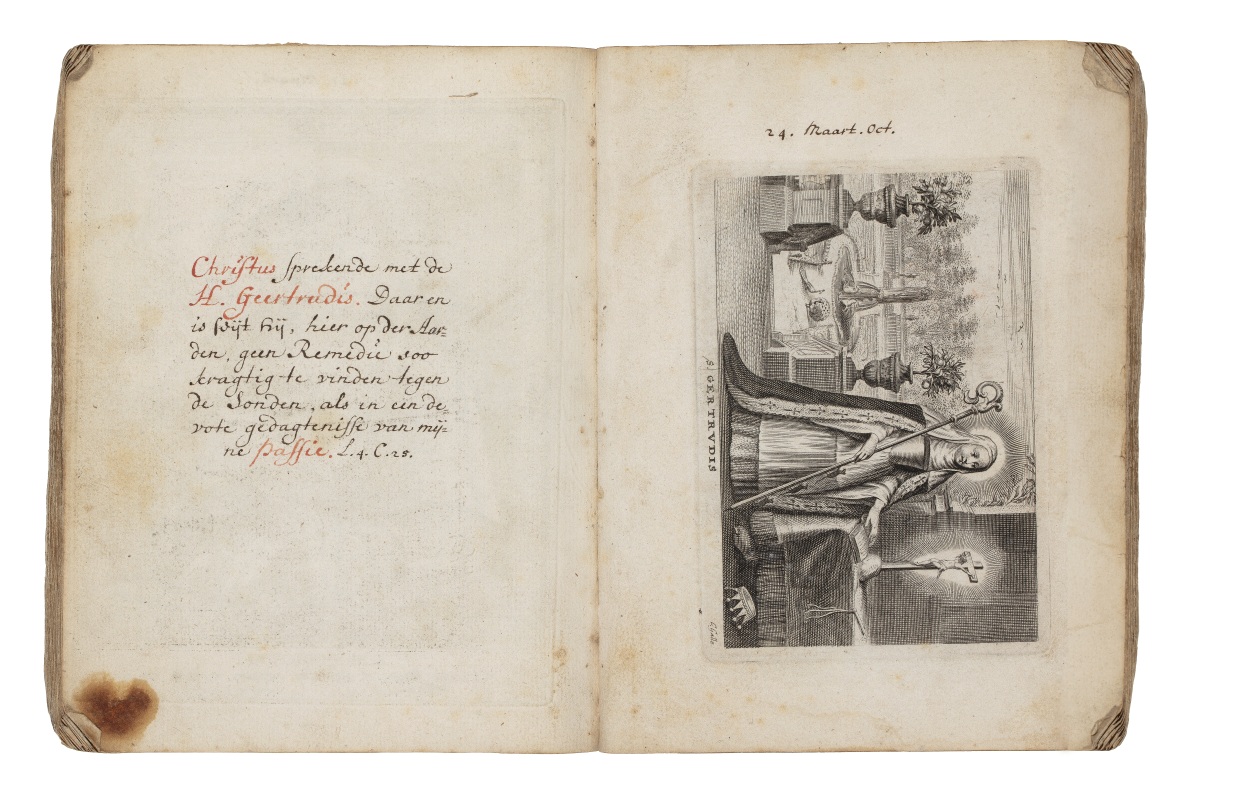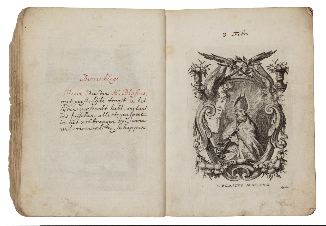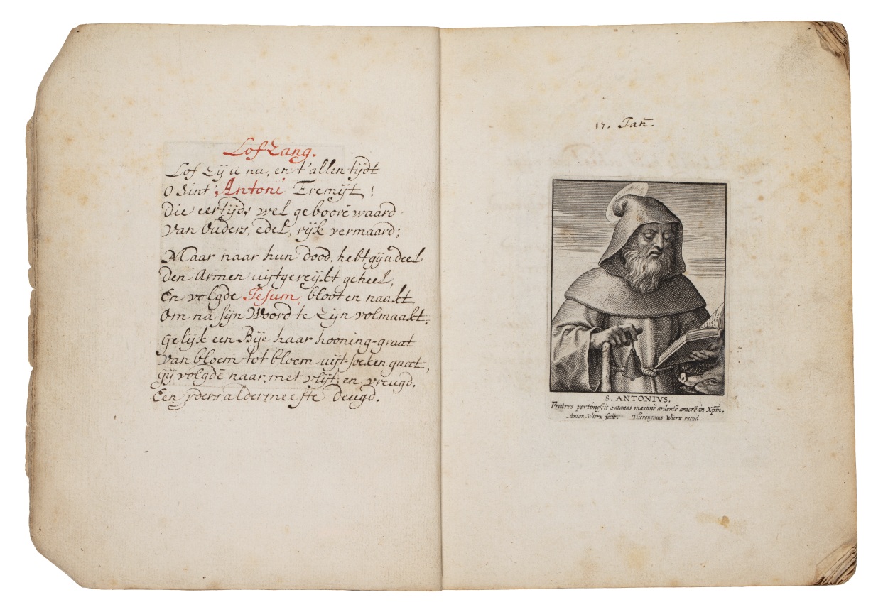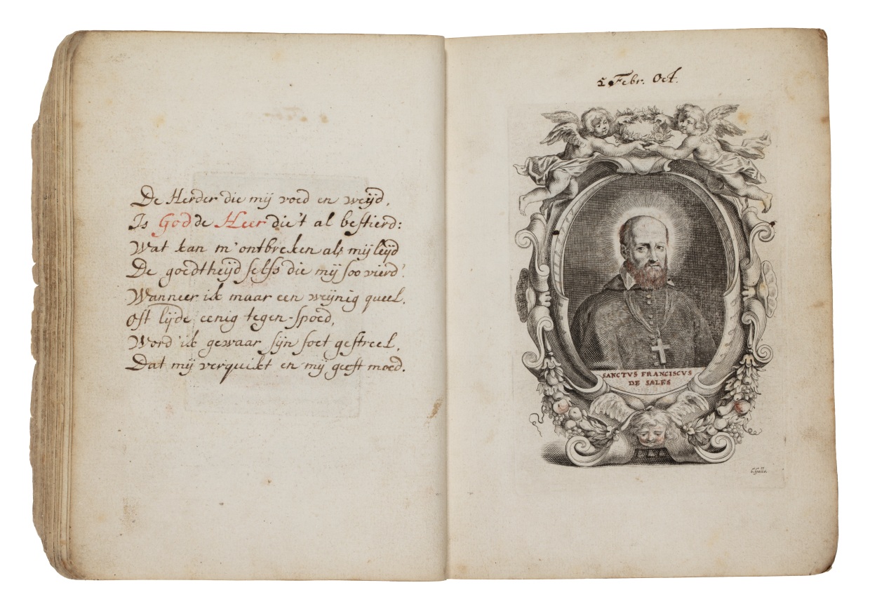 Album met handgeschreven gebeden en meditaties tot diverse heiligen (januari-oktober), met prenten