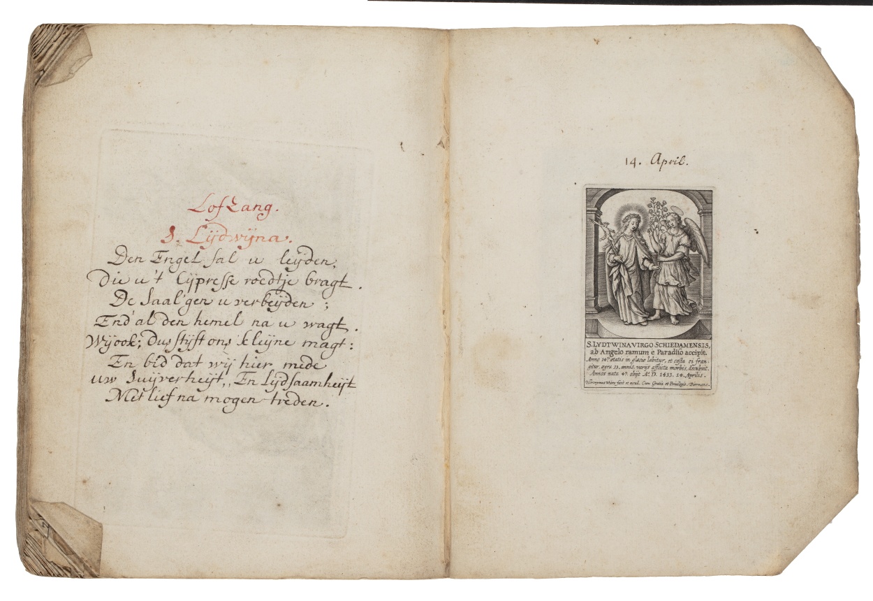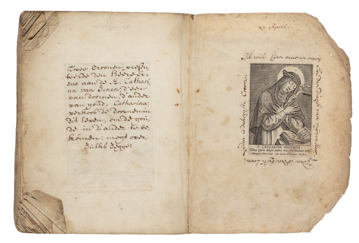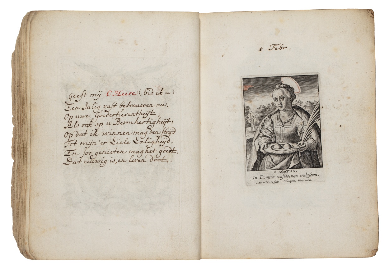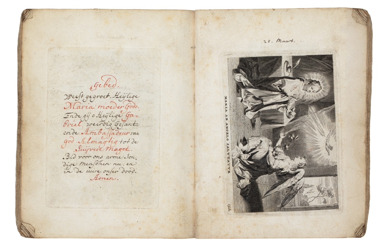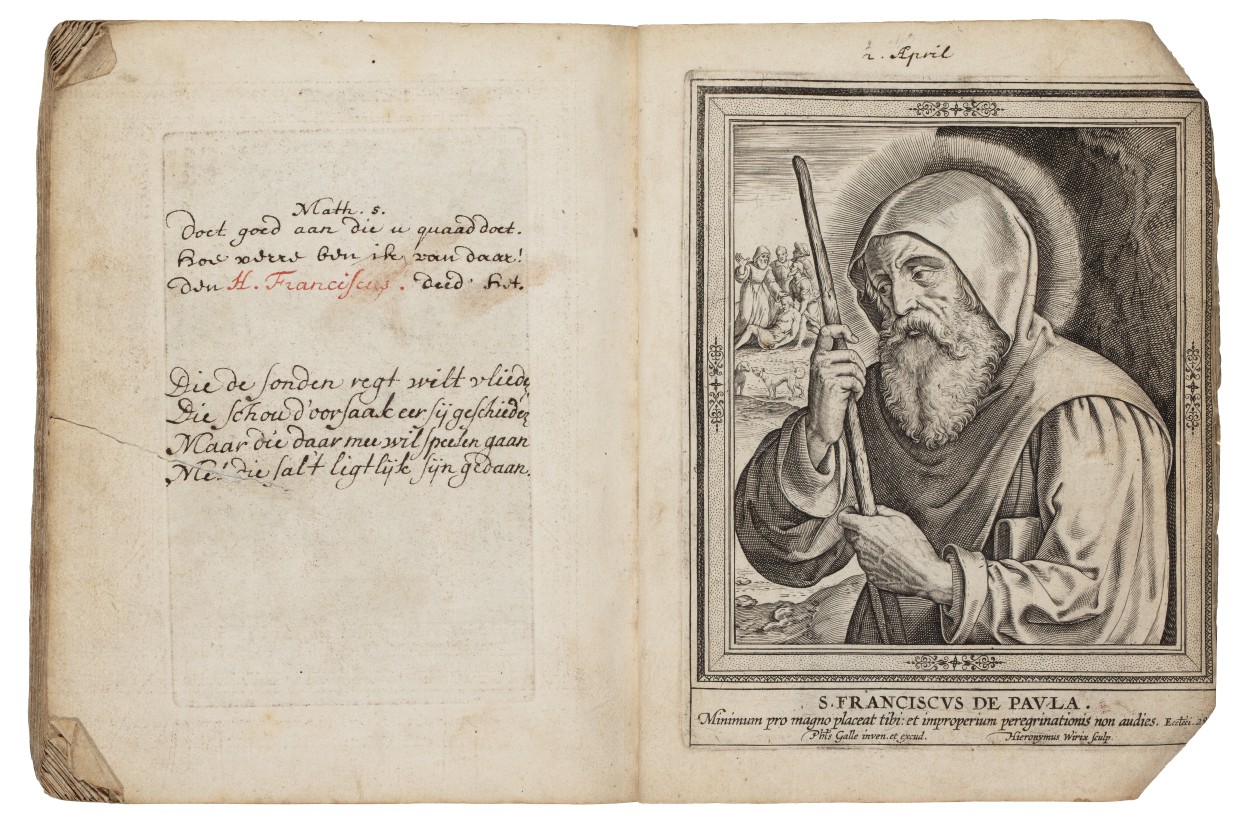 Album met handgeschreven gebeden en meditaties tot diverse heiligen (januari-oktober), met prenten