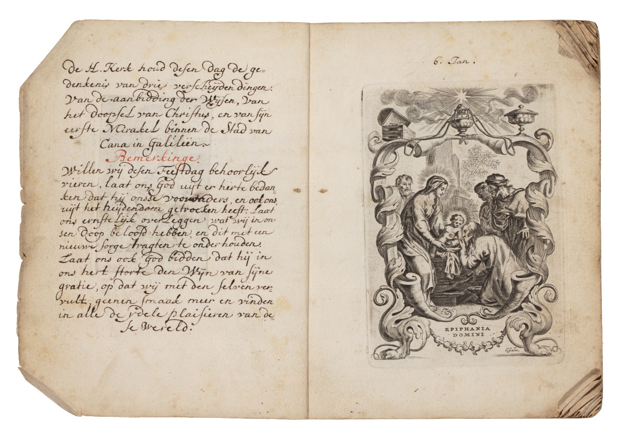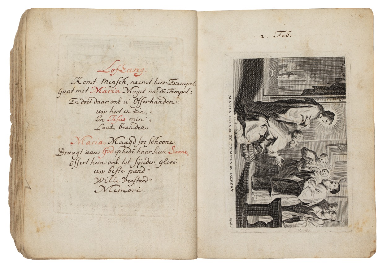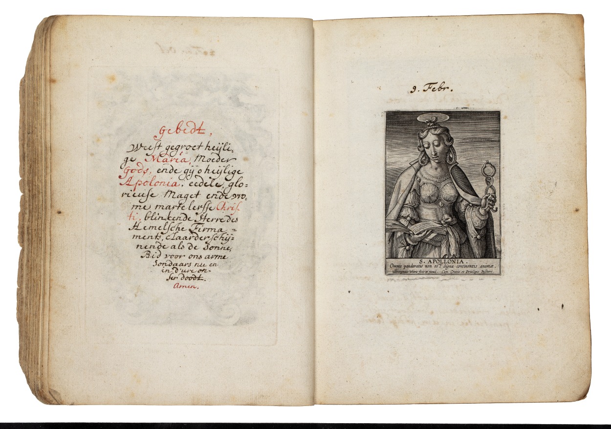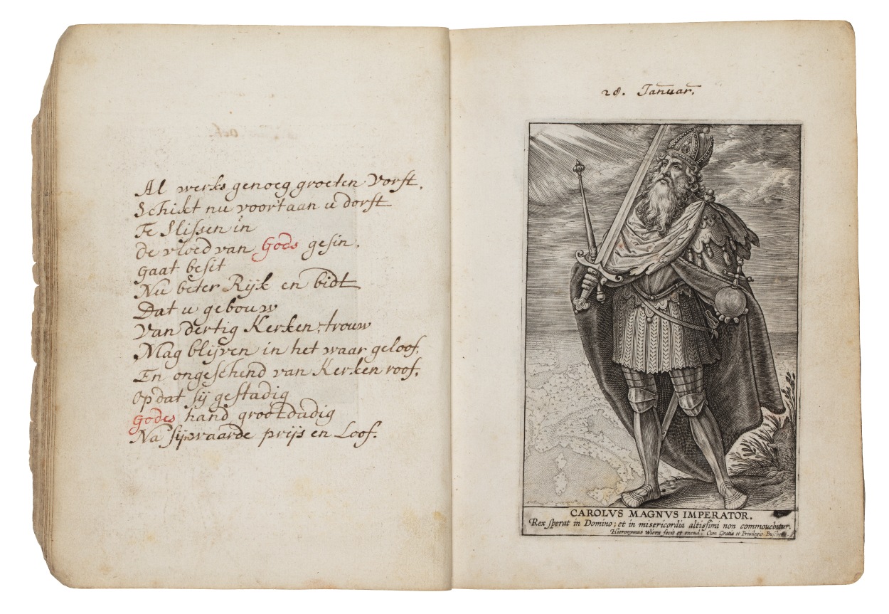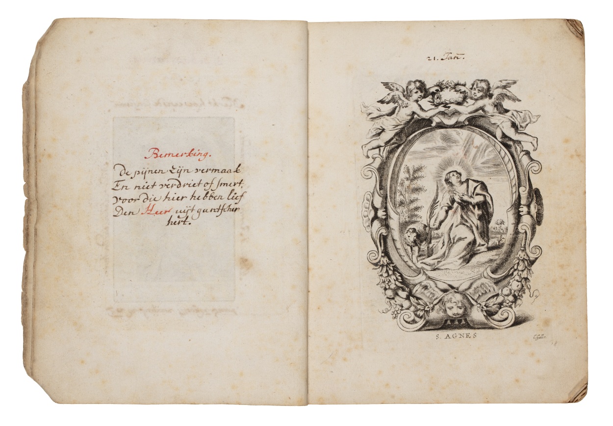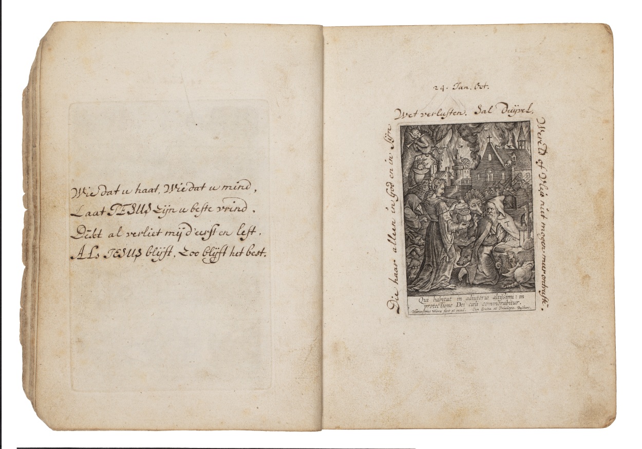Album met handgeschreven gebeden en meditaties tot diverse heiligen (januari-oktober), met prenten