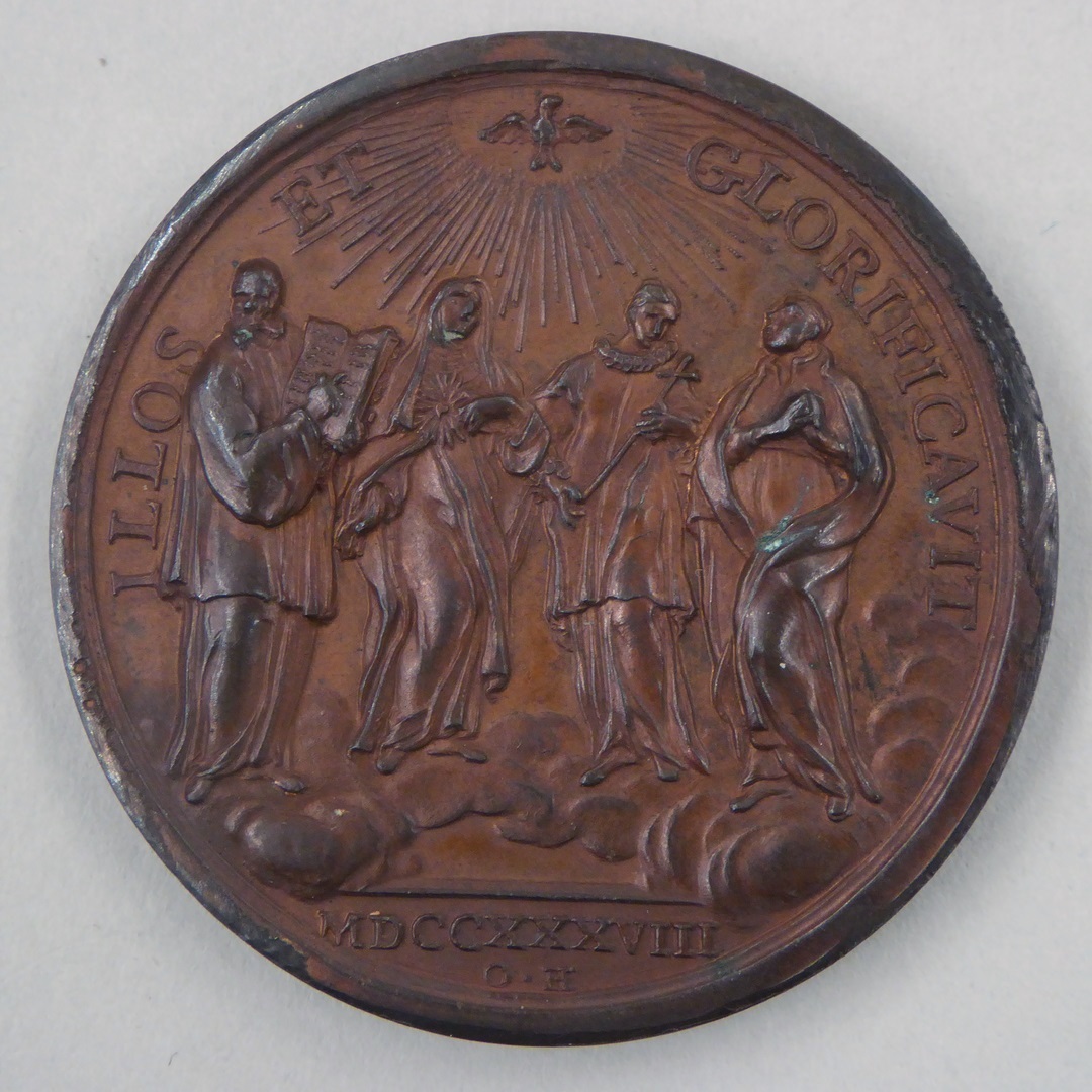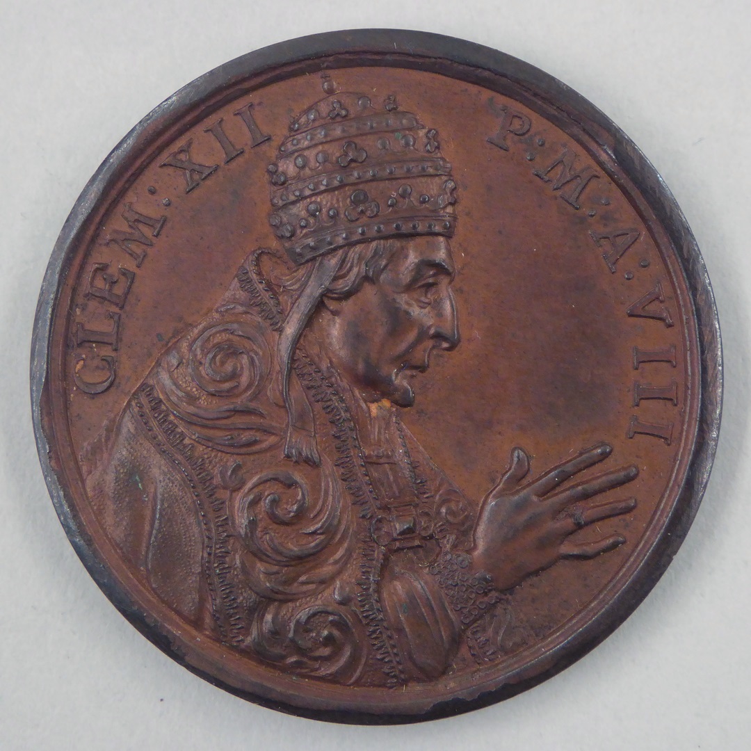 Pauspenning met portret paus Clemens XII (1730-1740), kz. vier nieuwe heiligen