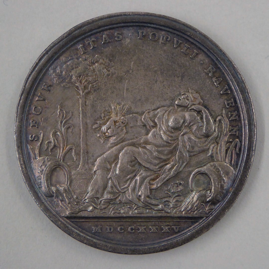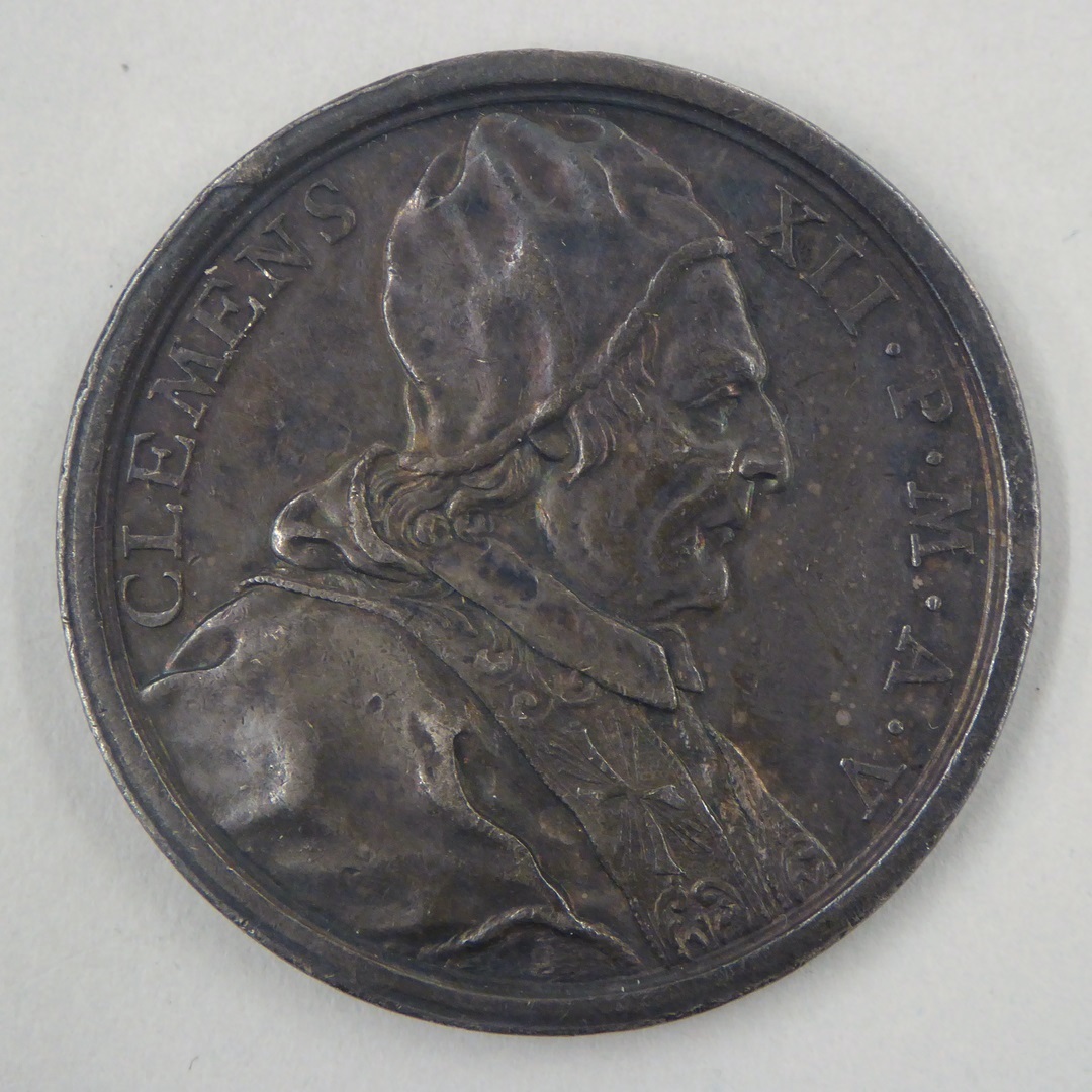 Pauspenning met portret paus Clemens XII (1730-1740), kz. allegorische vrouw "Securitas"