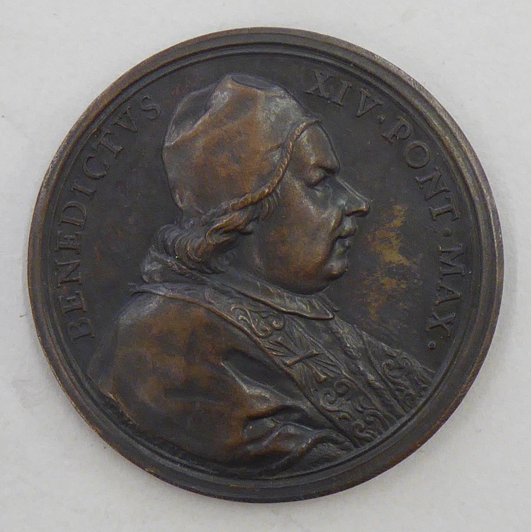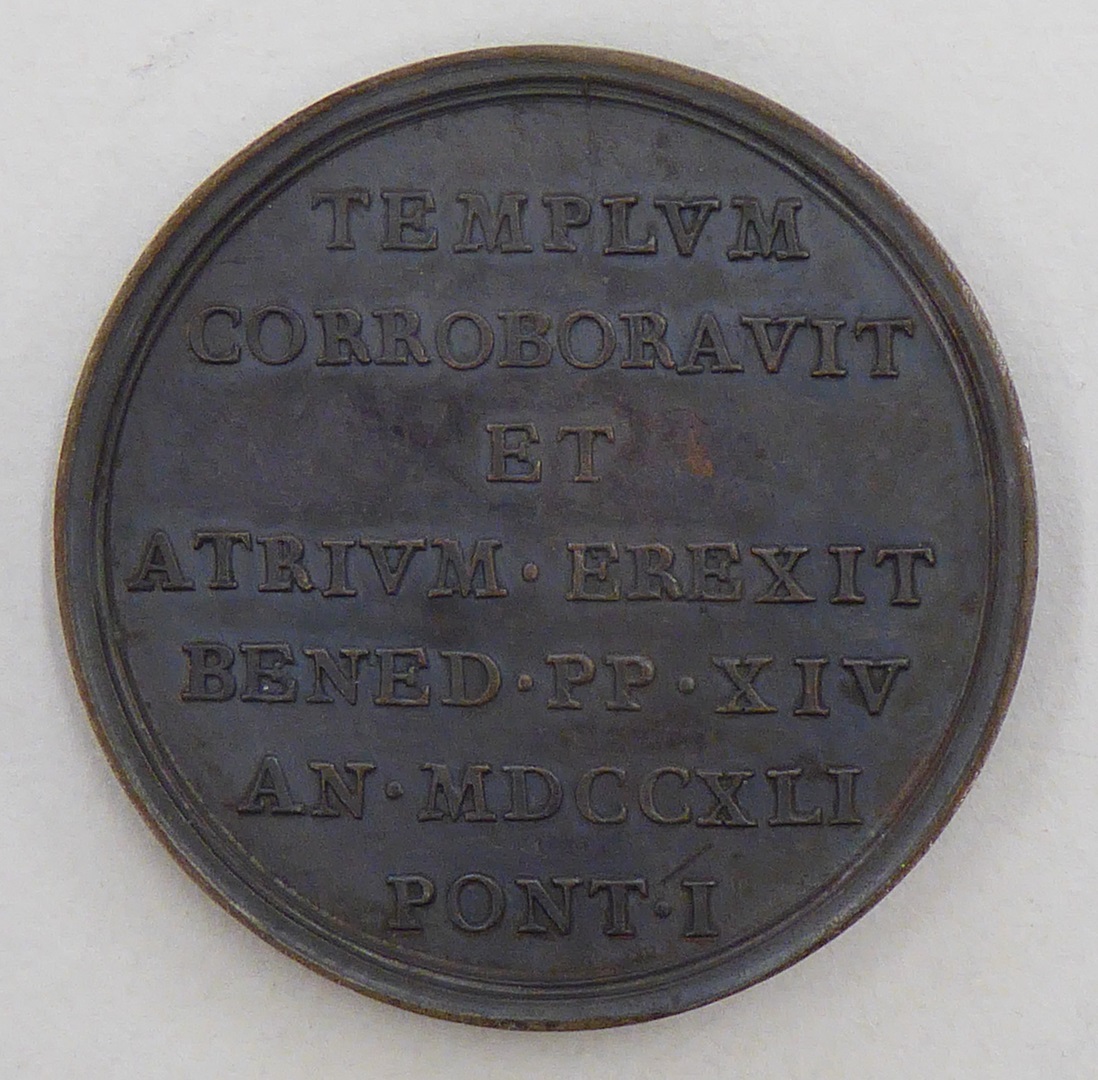 Pauspenning met portret paus Benedictus XIV (1740-1758), kz. opschrift, 1741