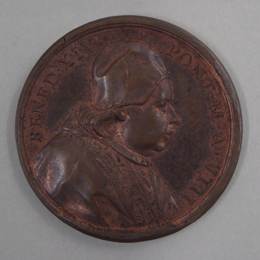 Pauspenning met portret paus Benedictus XIV (1740-1758), kz. sleutels St. Petrus, 1747