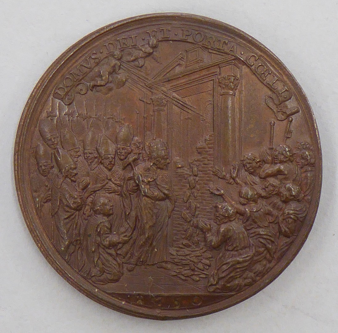 Pauspenning met portret paus Benedictus XIV (1740-1758), kz. openen H. Deur, 1750