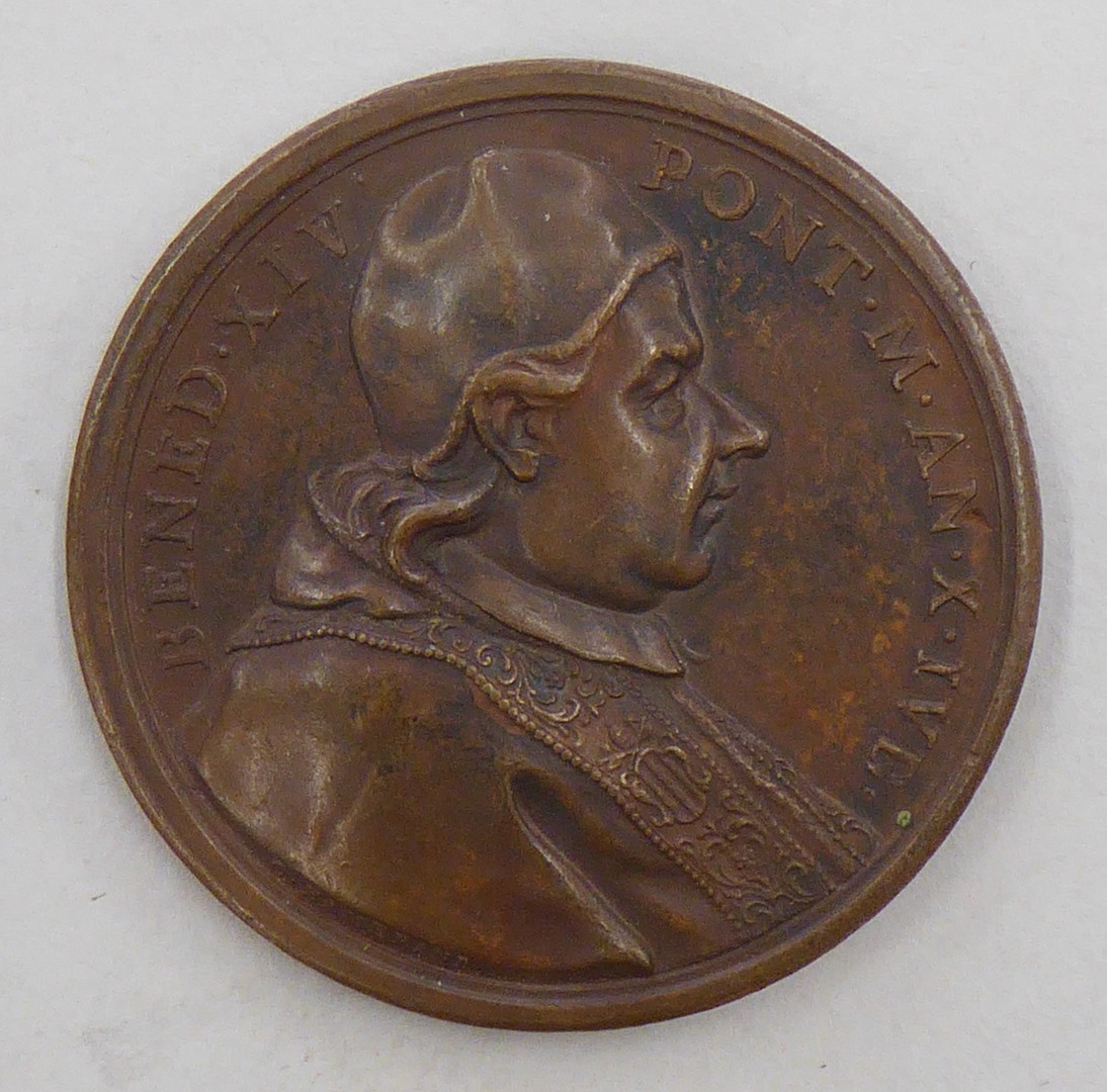 Pauspenning met portret paus Benedictus XIV (1740-1758), kz. sluiten H. Deur, 1750