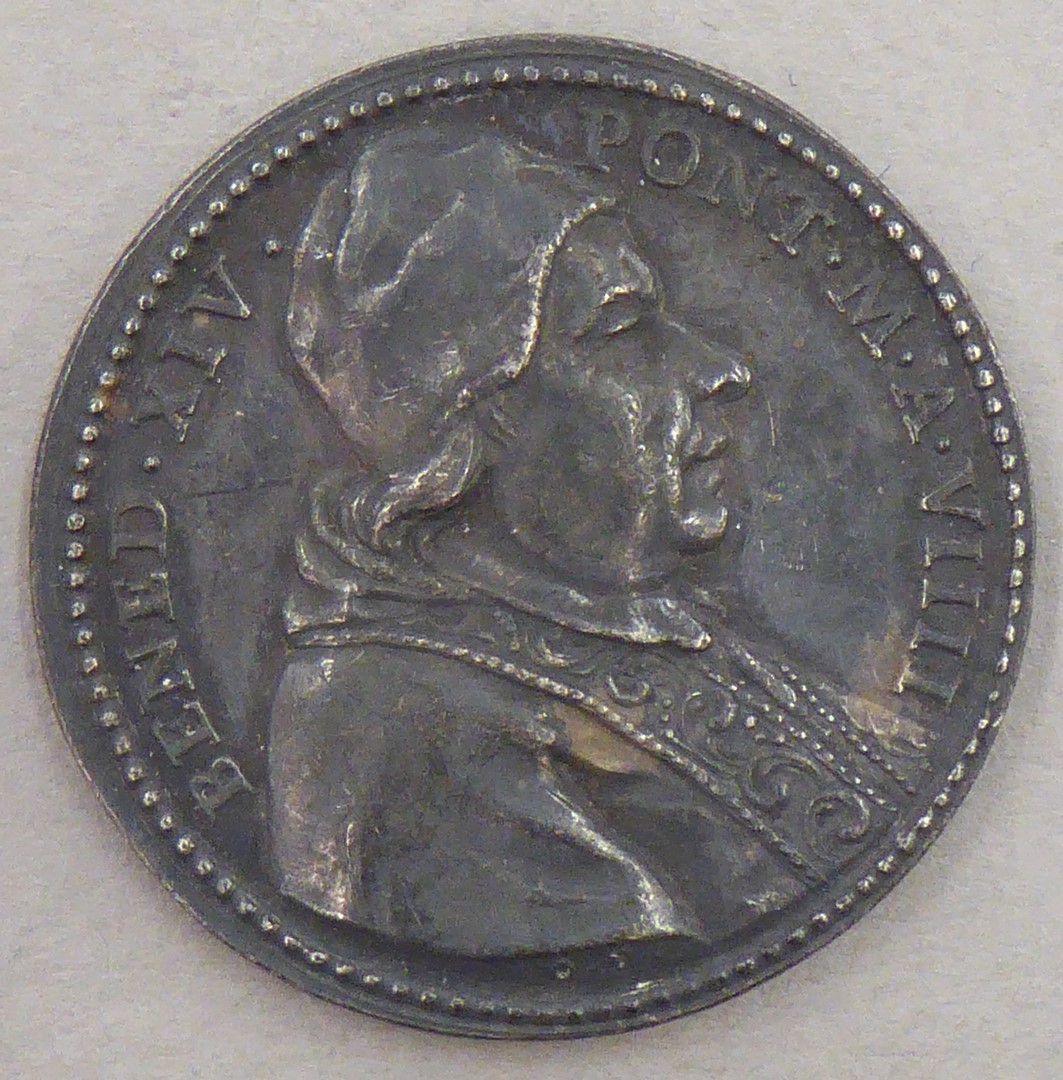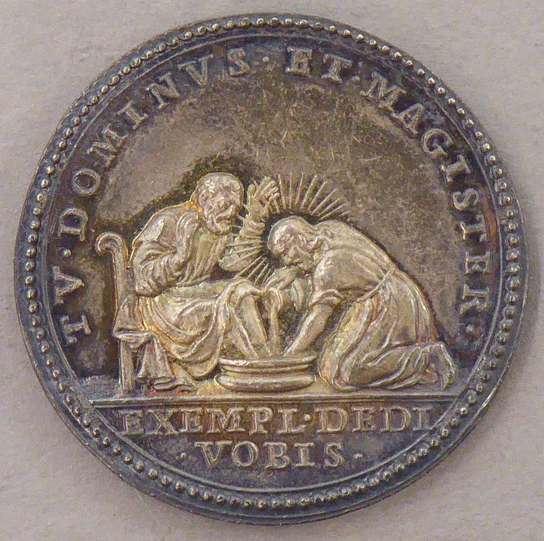 Pauspenning met portret paus Benedictus XIV (1740-1758), kz. voetwassing