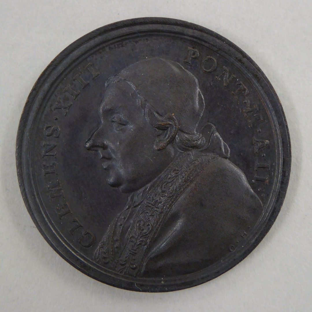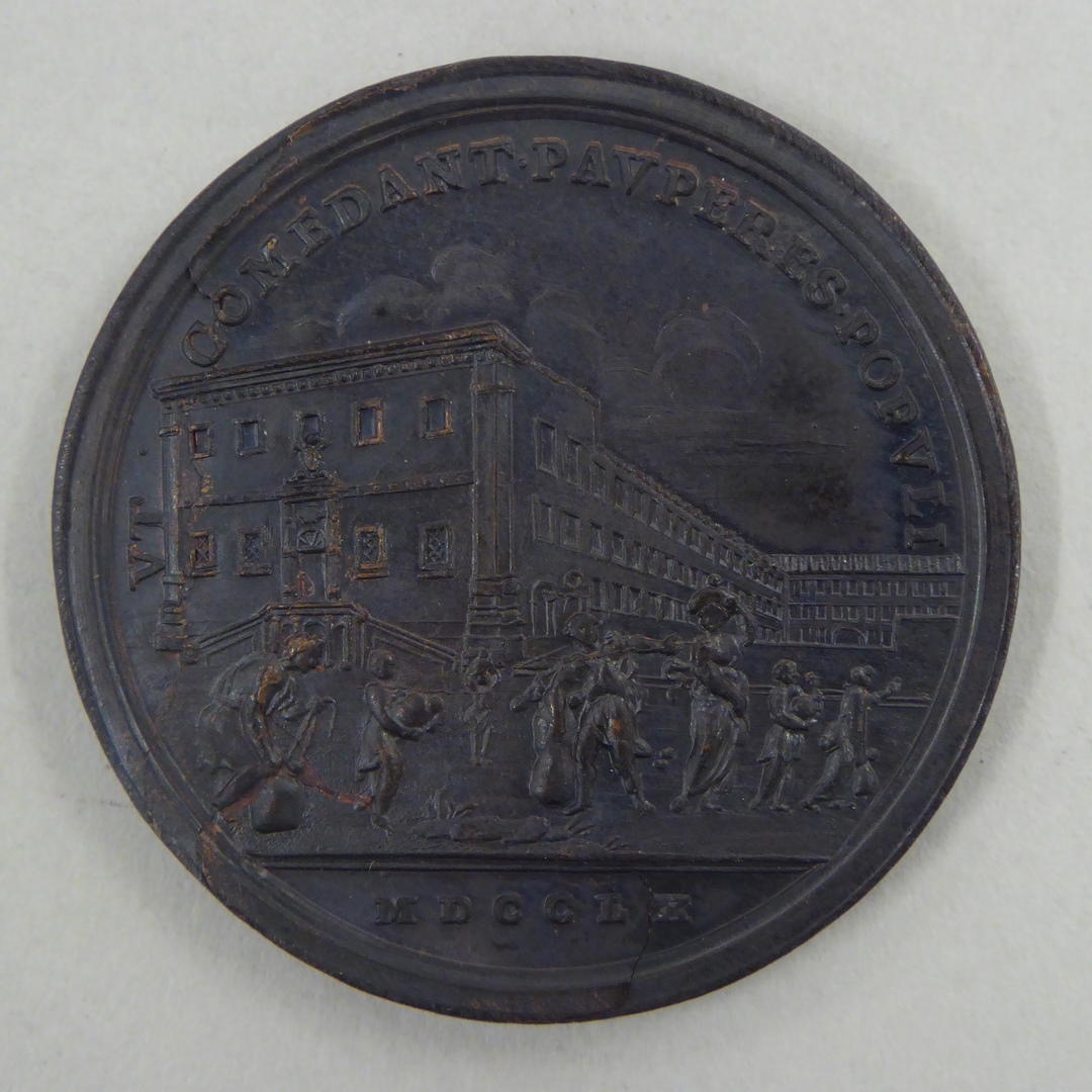 Pauspenning met portret paus Clemens XIII (1758-1769), kz. korenuitdeling aan armen, 1760
