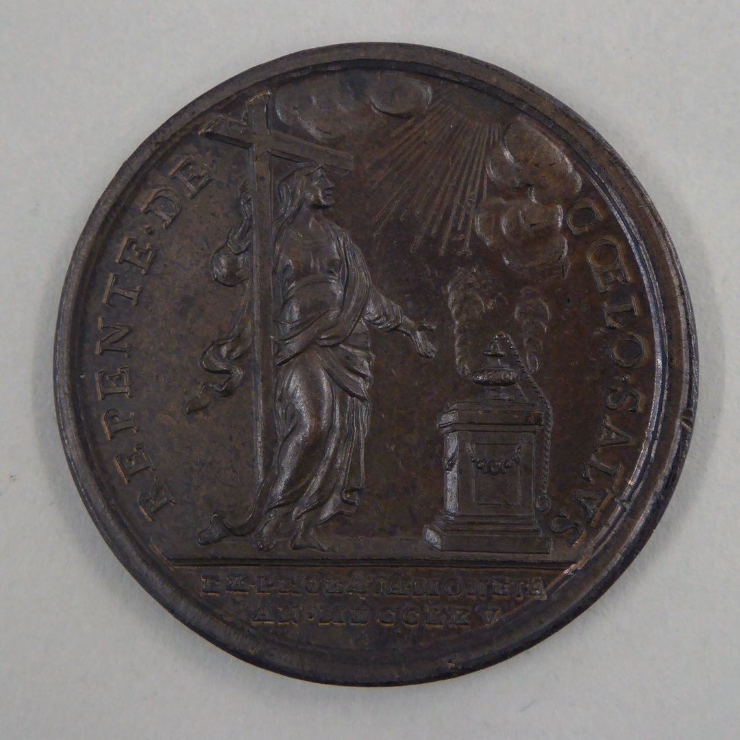 Pauspenning met portret paus Clemens XIII (1758-1769), kz. allegorie geloof, 1765