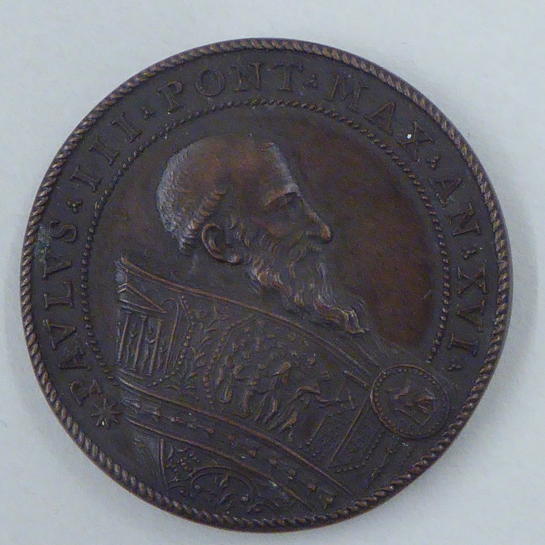 Pauspenning met portret paus Paulus III (1534-1549), kz. Ganimedes besproeit lelie Farnese