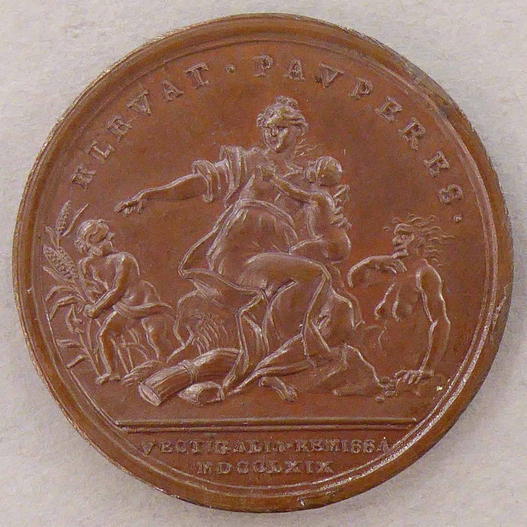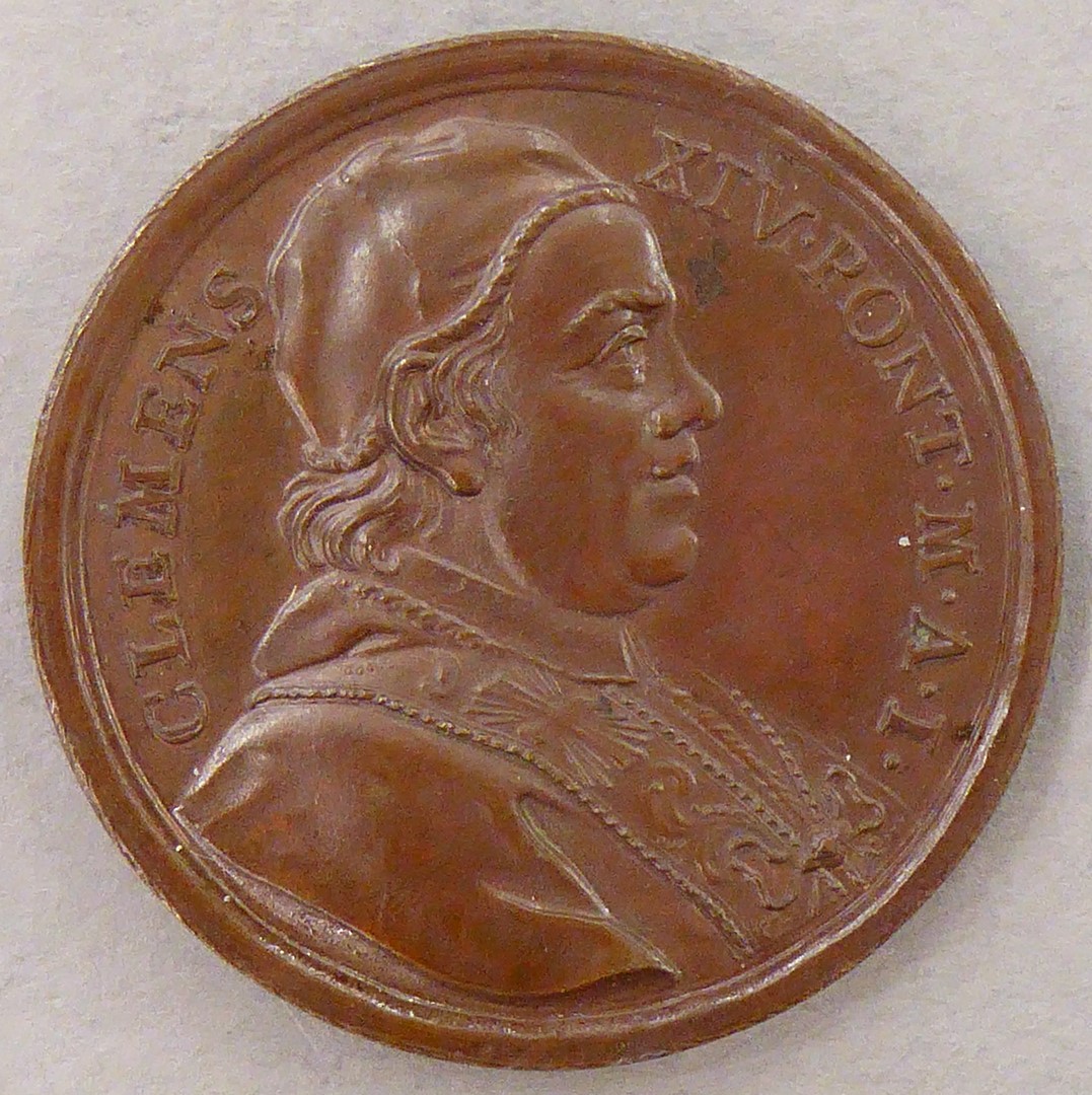 Pauspenning met portret paus Clemens XIV (1769-1774), kz. allegorie vrijgevigheid, 1769