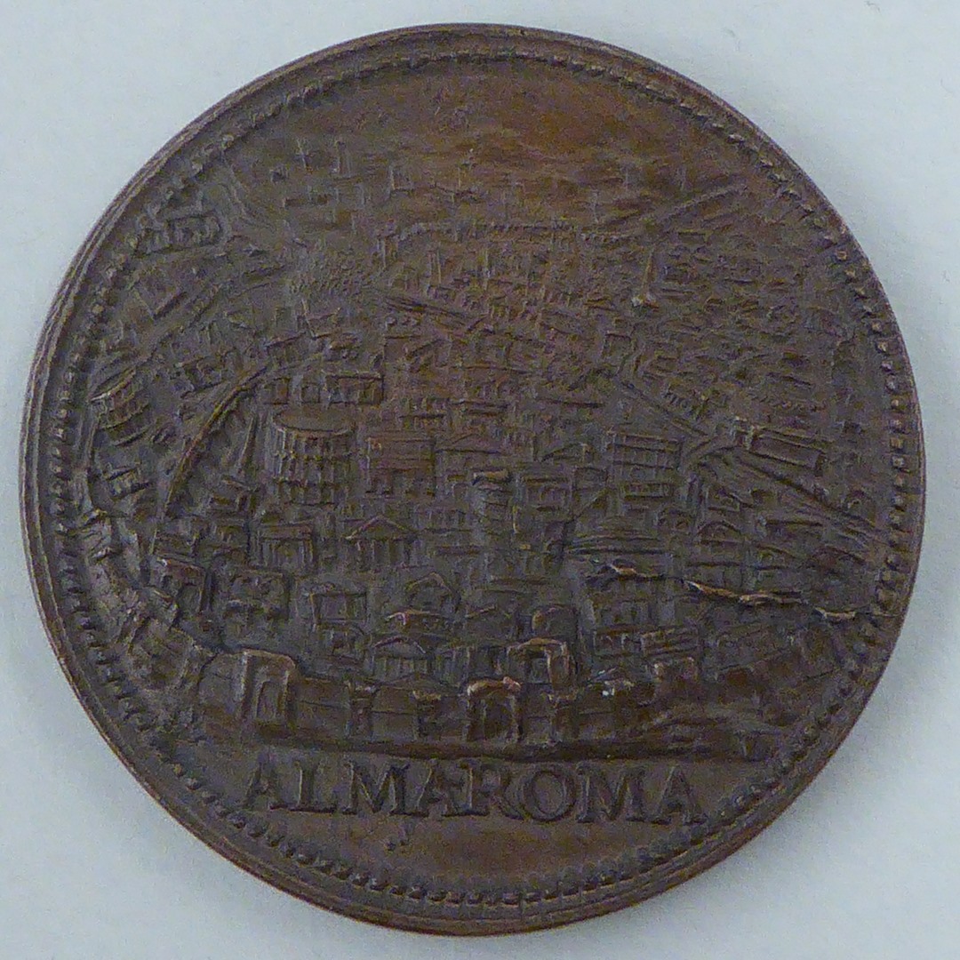 Pauspenning met portret paus Paulus III (1534-1549), kz. gezicht op Rome