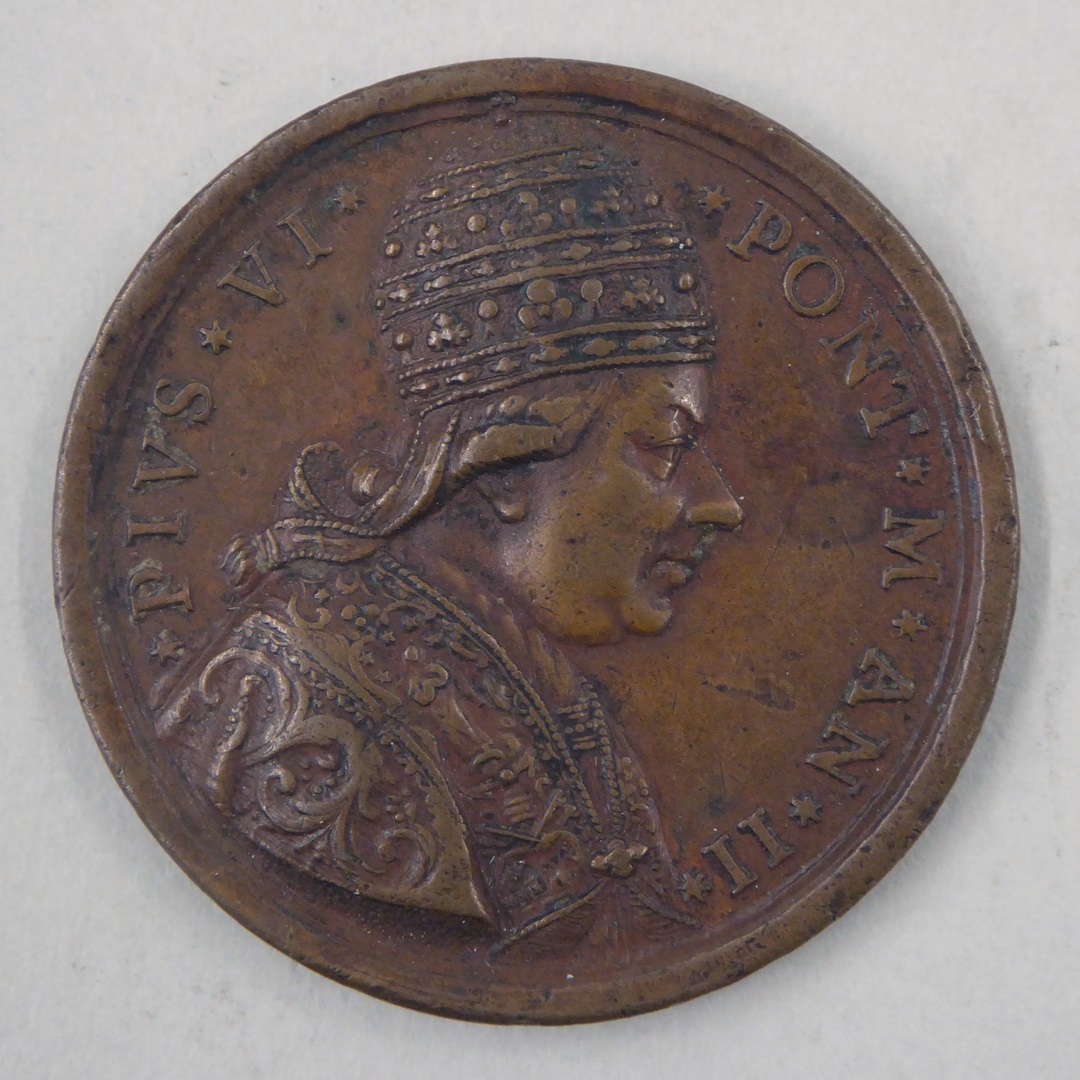 Pauspenning met portret paus Pius VI (1775-1799), kz. opschrift, 1776