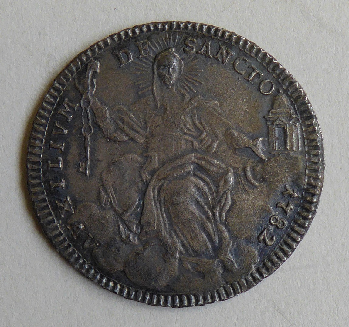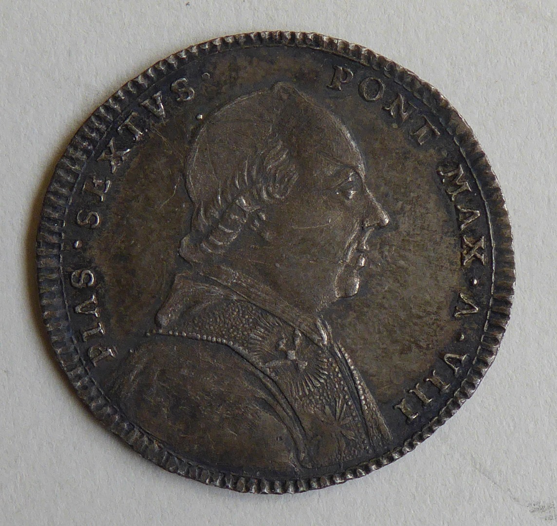 Pauspenning met portret paus Pius VI (1775-1799), kz. H. Maagd op wolken, 1782