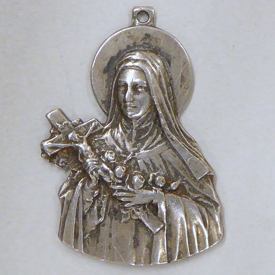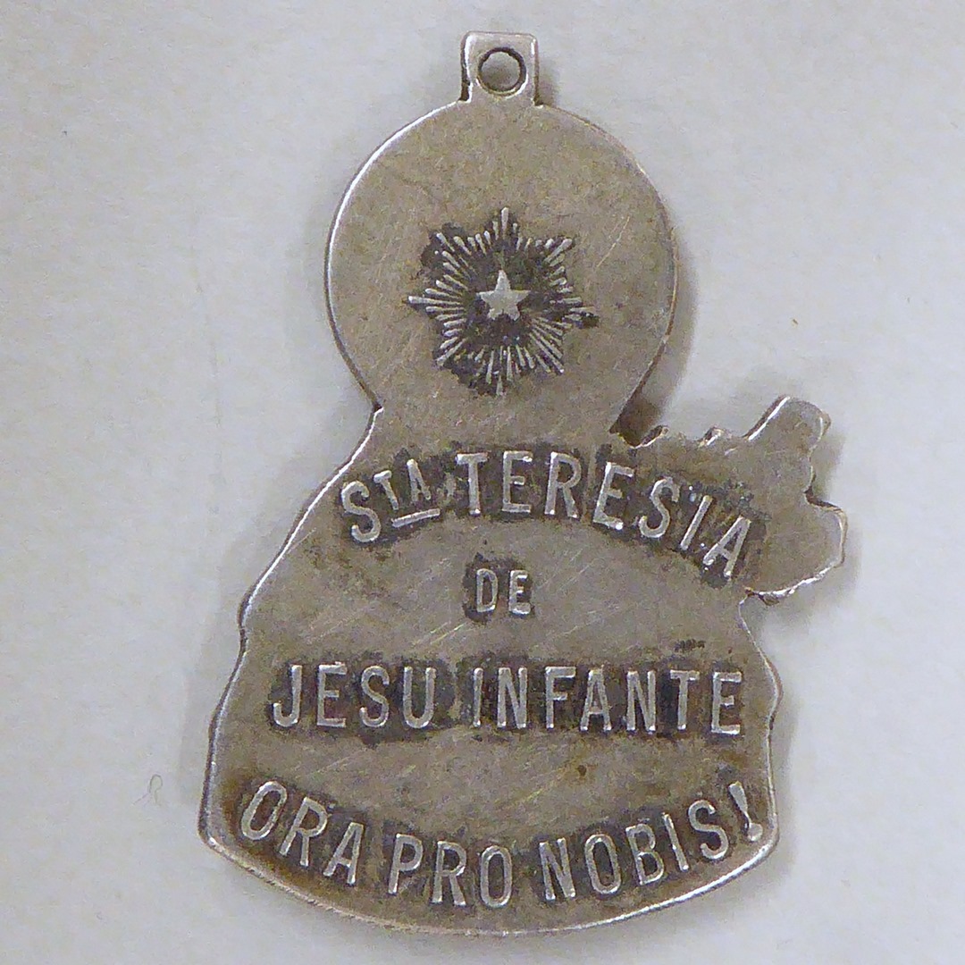 Hanger met H. Theresia, kz. met "Sta. Teresia de Jesu infante, ora pro nobis!"